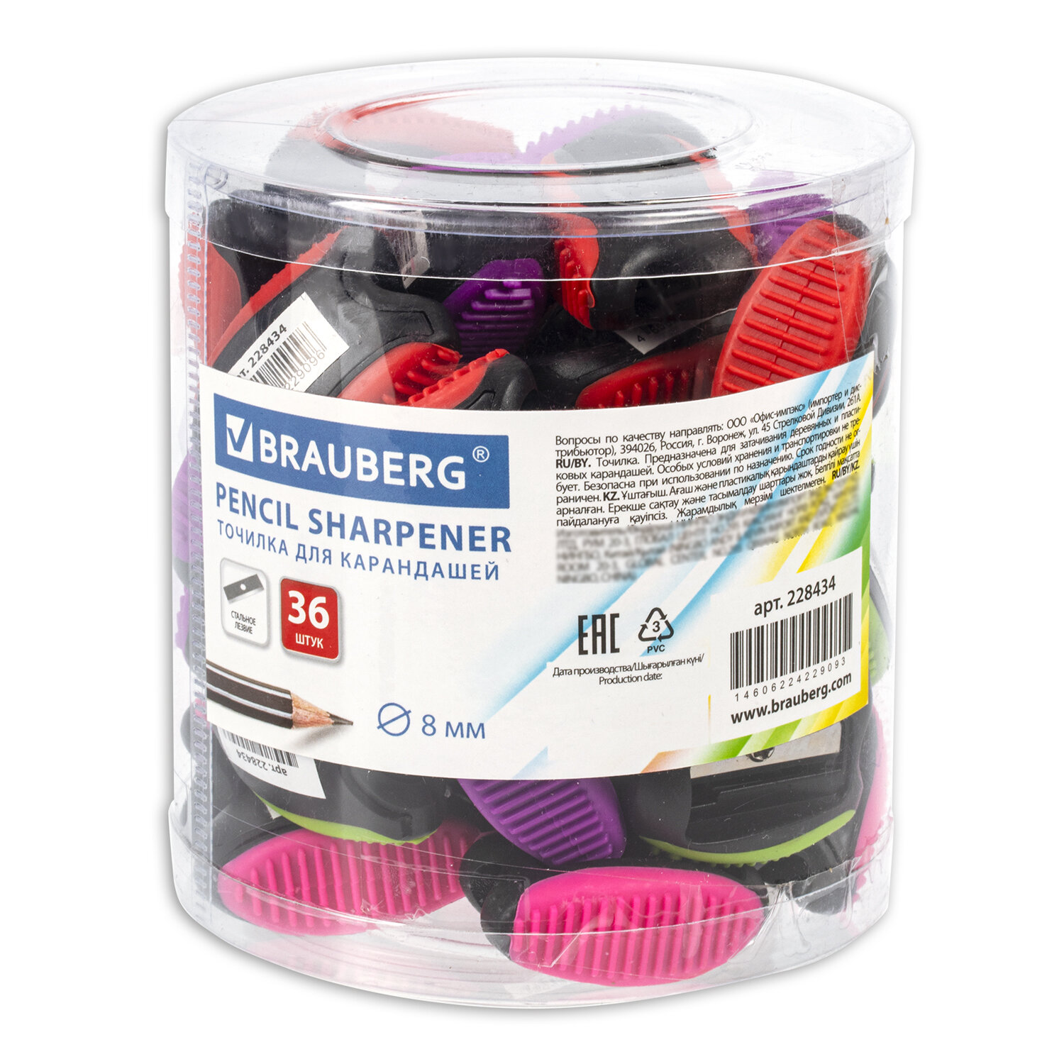 - Точилка BRAUBERG "Space Neon", пластиковая, корпус ассорти, 228434