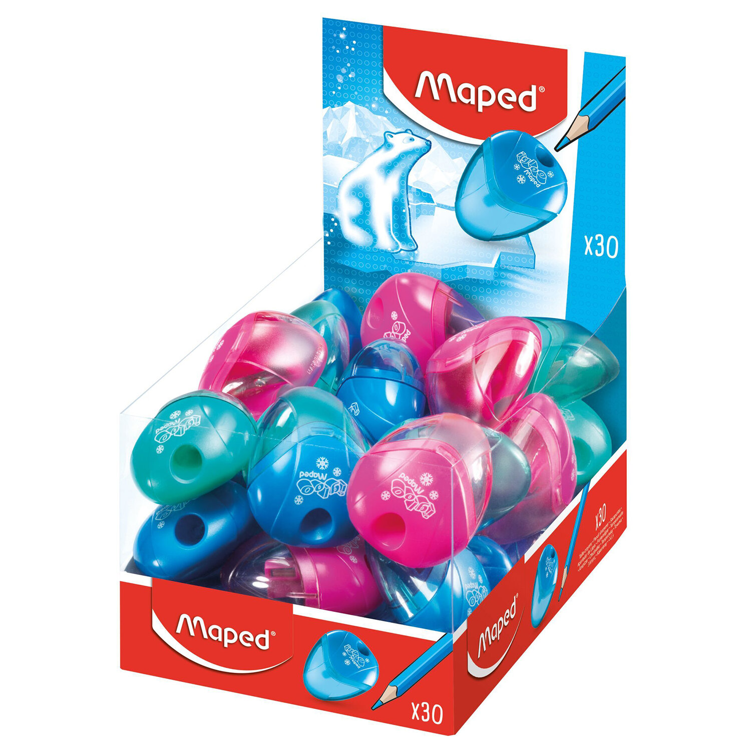 - Точилка MAPED (Франция) "I-Gloo", с контейнером, ассорти, дисплей, 534754