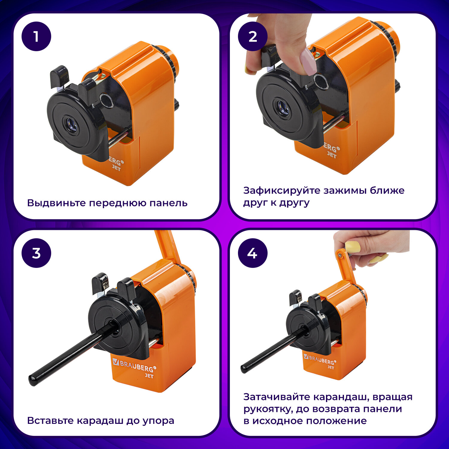 - Точилка механическая BRAUBERG "JET", металлический механизм, корпус оранжевый, 229567