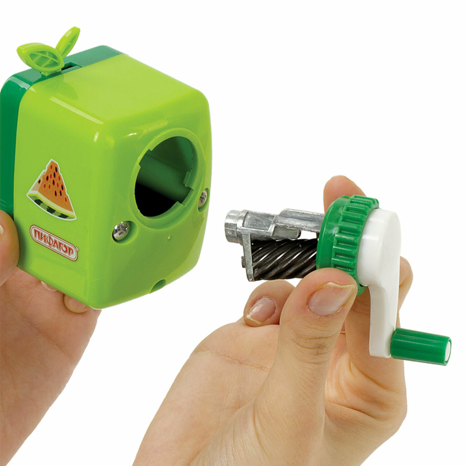 - Точилка механическая ПИФАГОР "Арбуз", корпус зелёный/красный, 270427