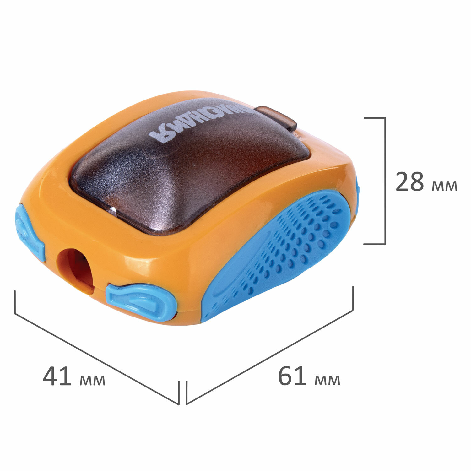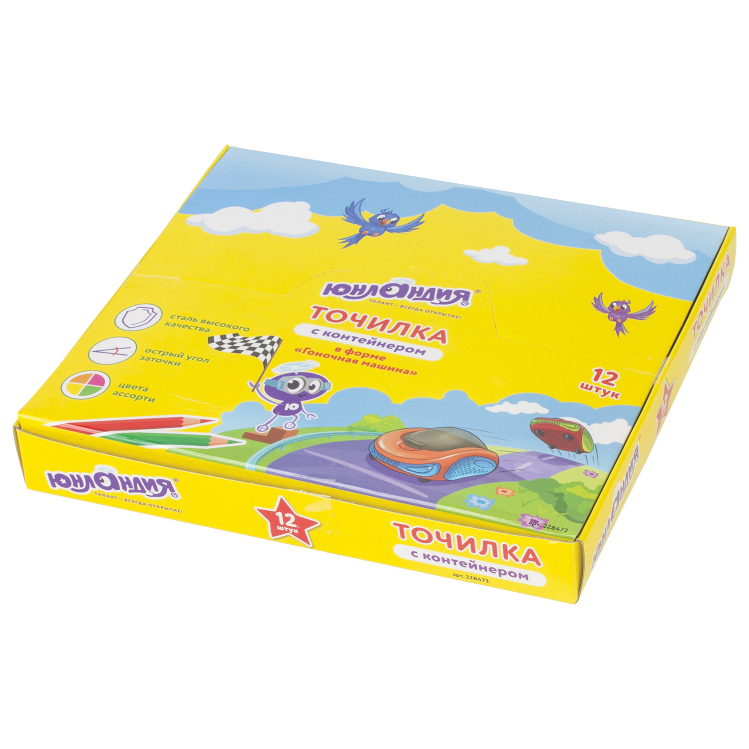 Эргономичный корпус в форме машины выполнен из пластика. Снизу на корпусе расположены подвижные колёса. Острое стальное лезвие обеспечивает быструю и легкую заточку. Карандаш затачивается аккуратно, а опилки остаются в специальном контейнере. Размер - 28х41х61 мм. Точилка ЮНЛАНДИЯ "Гонки", с контейнером, пластиковая, корпус ассорти, 228473