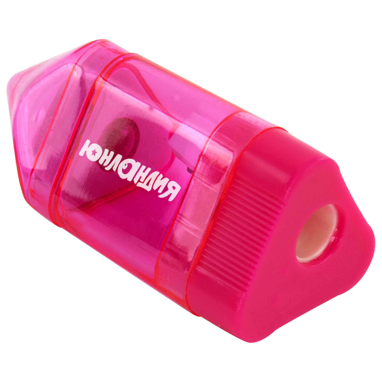 - Точилка ЮНЛАНДИЯ "Карандашик", со стирательной резинкой, с контейнером, пластиковая, ассорти, 228440