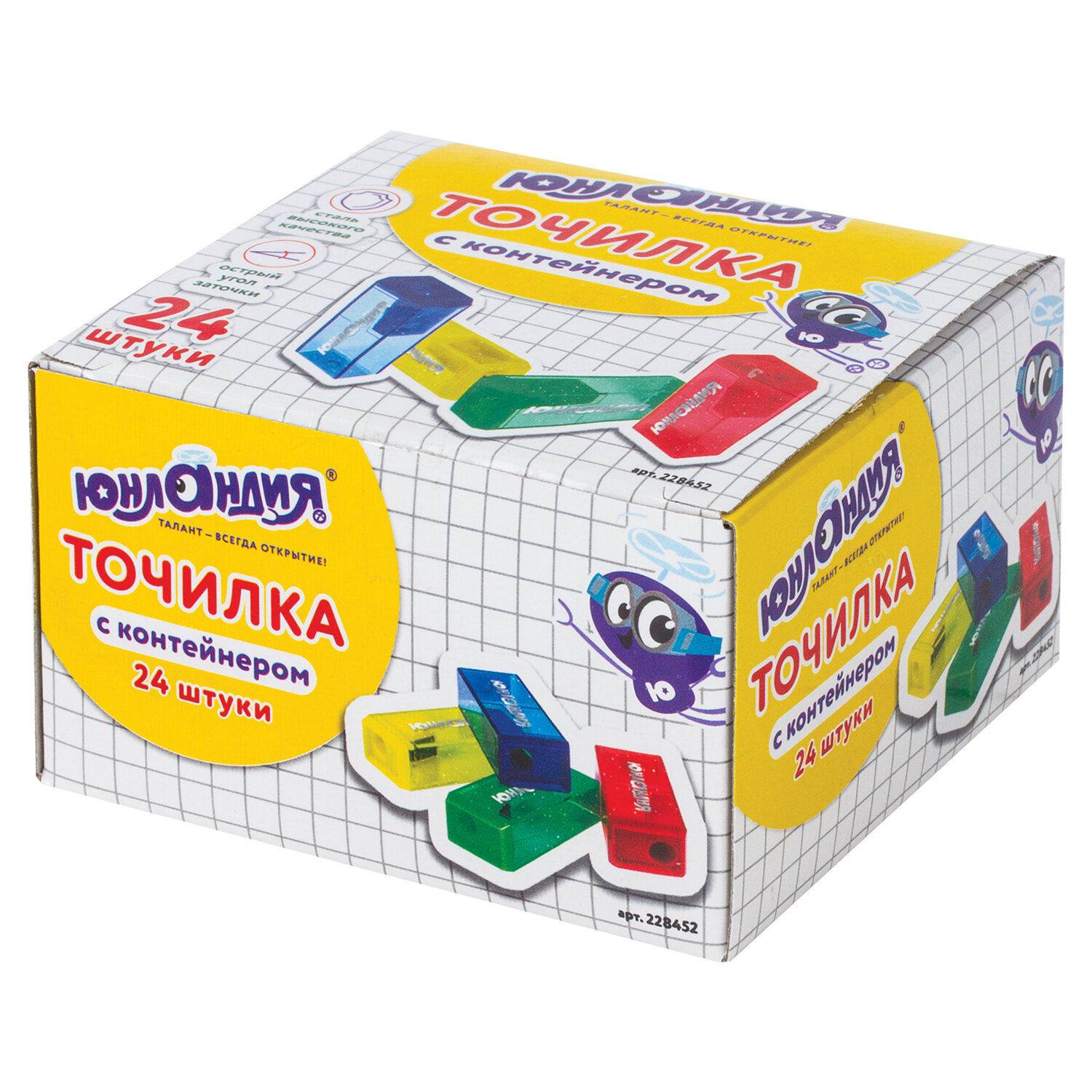 - Точилка ЮНЛАНДИЯ "Космо", с контейнером, пластиковая, корпус ассорти, 228452