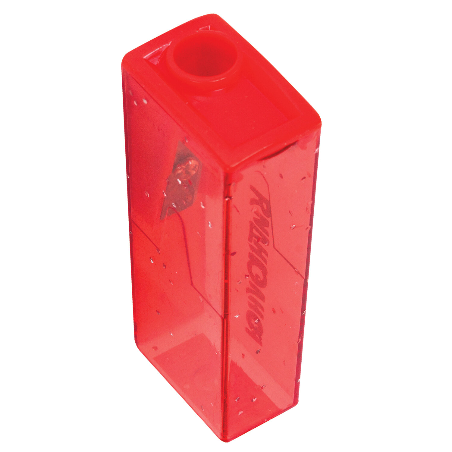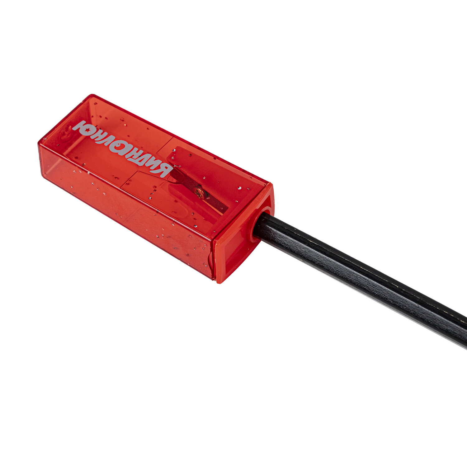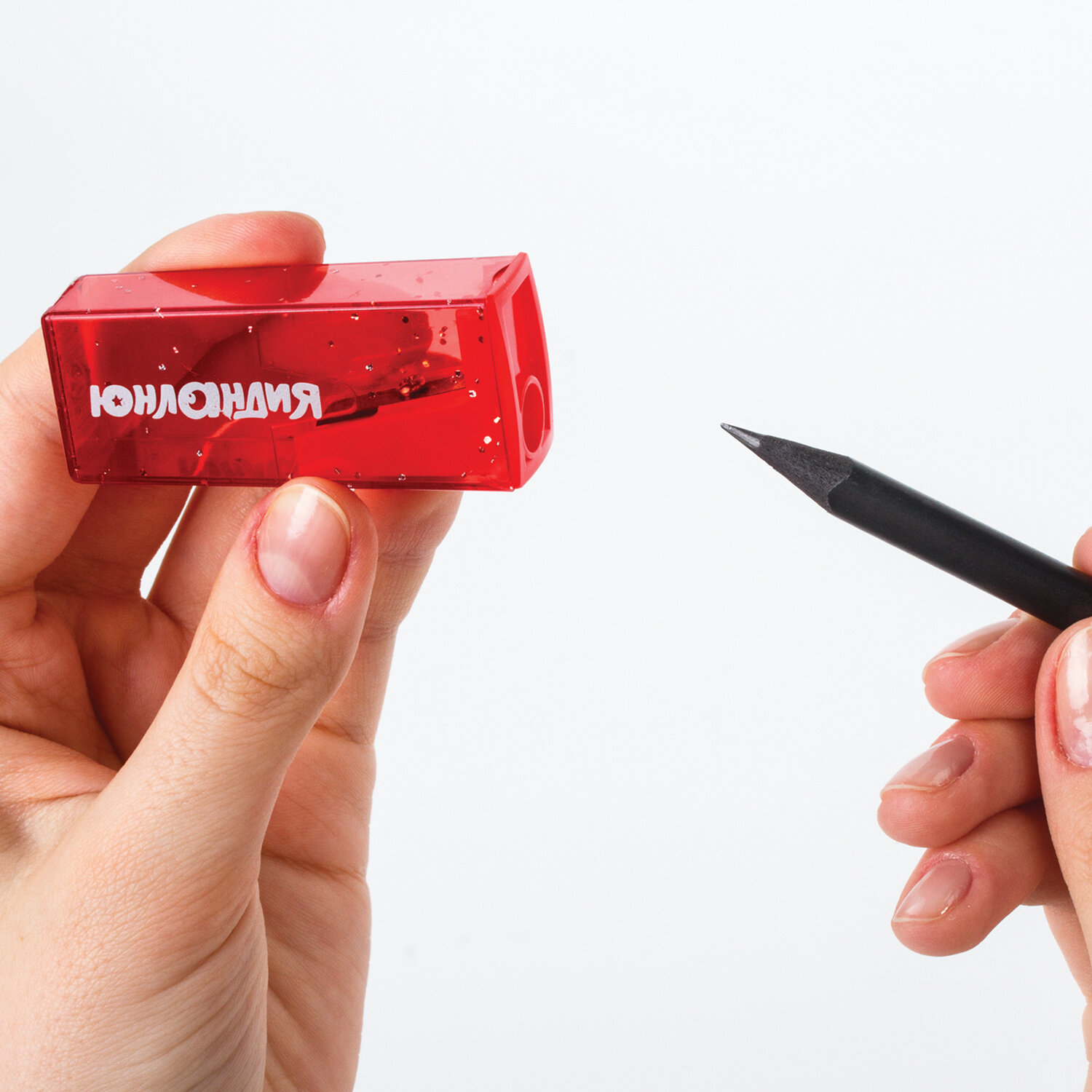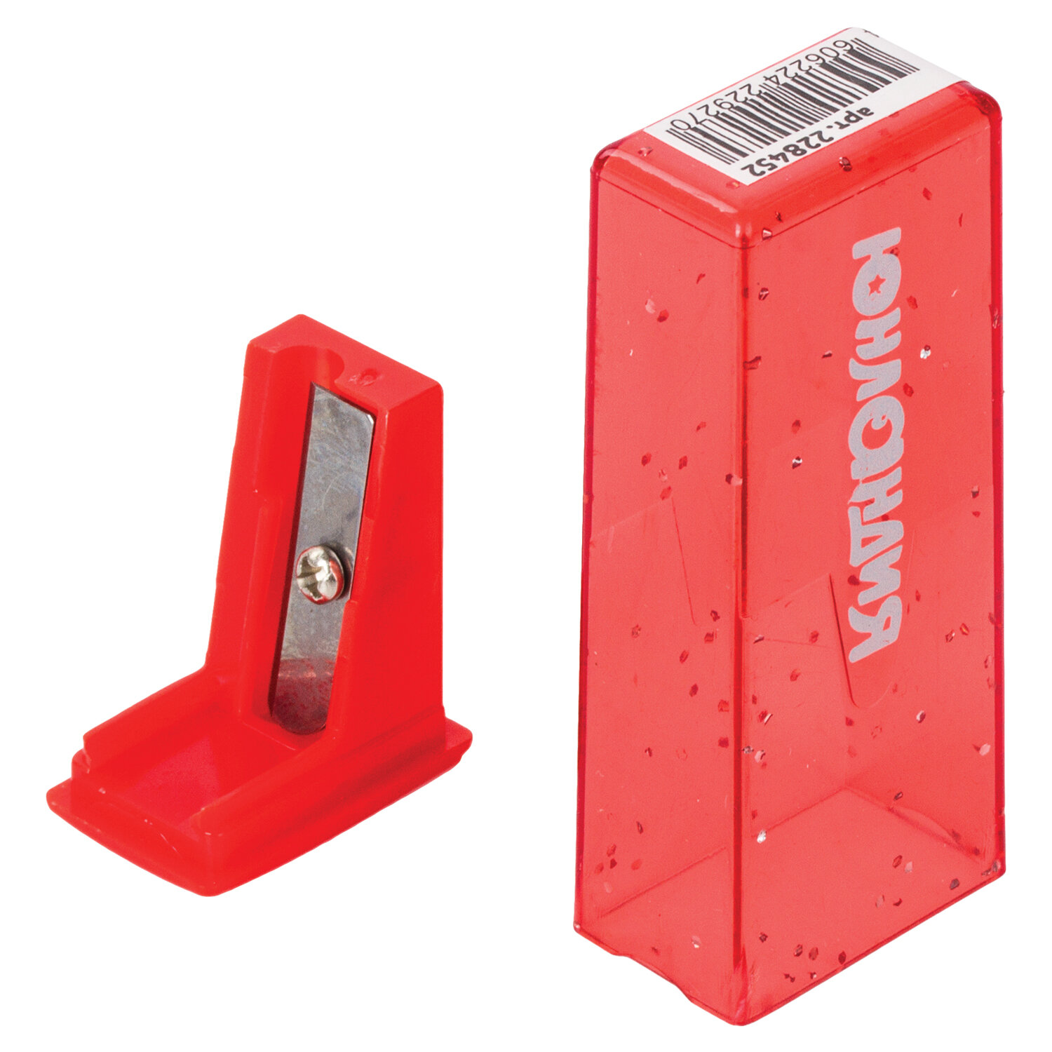 Корпус выполнен из пластика. Острое лезвие обеспечивает высококачественную и точную заточку. Карандаш до 8 мм затачивается легко и аккуратно, а опилки остаются в специальном контейнере. Компактные размеры (60х25х15 мм) позволят поместить точилку в пенал, а благодаря интересному дизайну она не затеряется на парте или столе среди других принадлежностей.