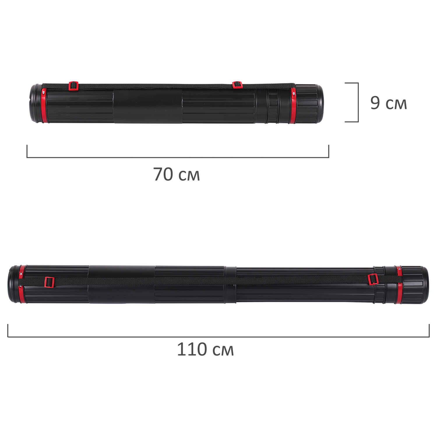 - Тубус для чертежей телескопический, диаметр 9 см, 70-110 см, А0, черный, на ремне, ПТ11