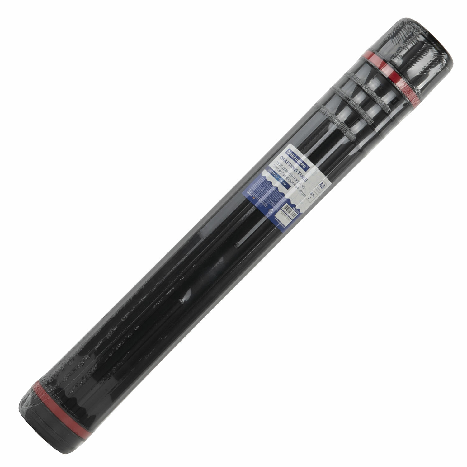 - Тубус для чертежей телескопический, длина 64-100 см, формат А0, диаметр 8,5 см, с ремнем, черный, BRAUBERG, 271256