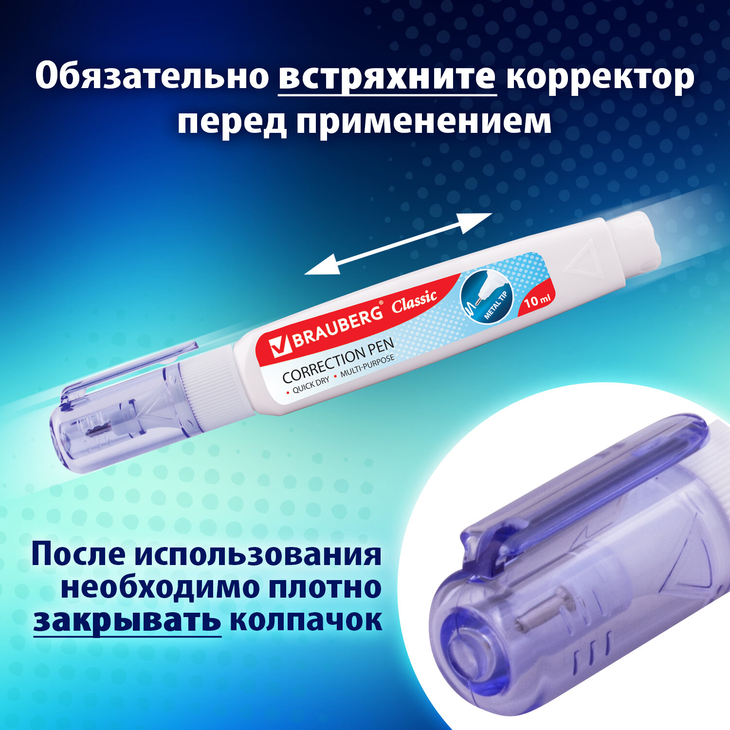 Перед началом использования ОБЯЗАТЕЛЬНО встряхните ручку. Ручка-корректор 10 мл ВЫГОДНАЯ УПАКОВКА, КОМПЛЕКТ 2 штуки, BRAUBERG CLASSIC, 271920