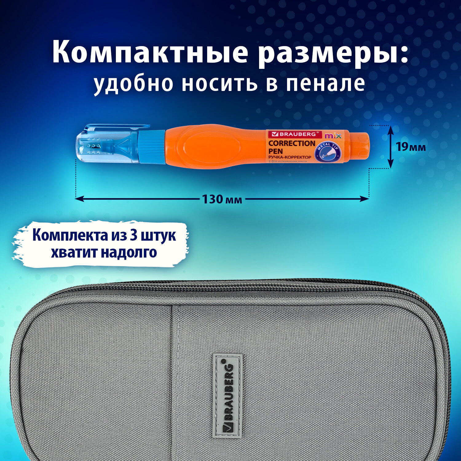 Перед началом использования ОБЯЗАТЕЛЬНО встряхните ручку. Ручка-корректор 10 мл ВЫГОДНАЯ УПАКОВКА, КОМПЛЕКТ 3 штуки, BRAUBERG MIX, 271921