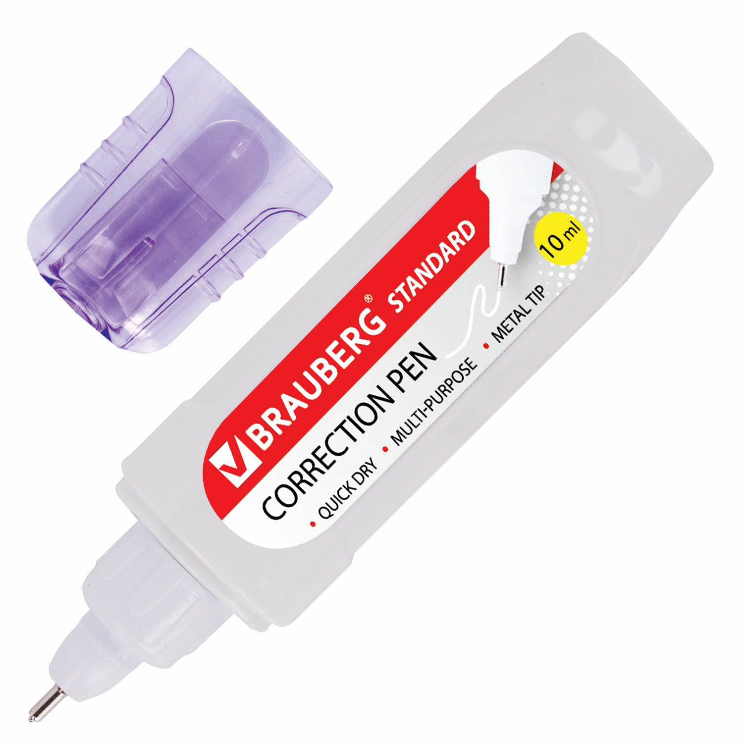 - Ручка-корректор BRAUBERG, 10 мл, металлический наконечник, в упаковке с подвесом, 222059