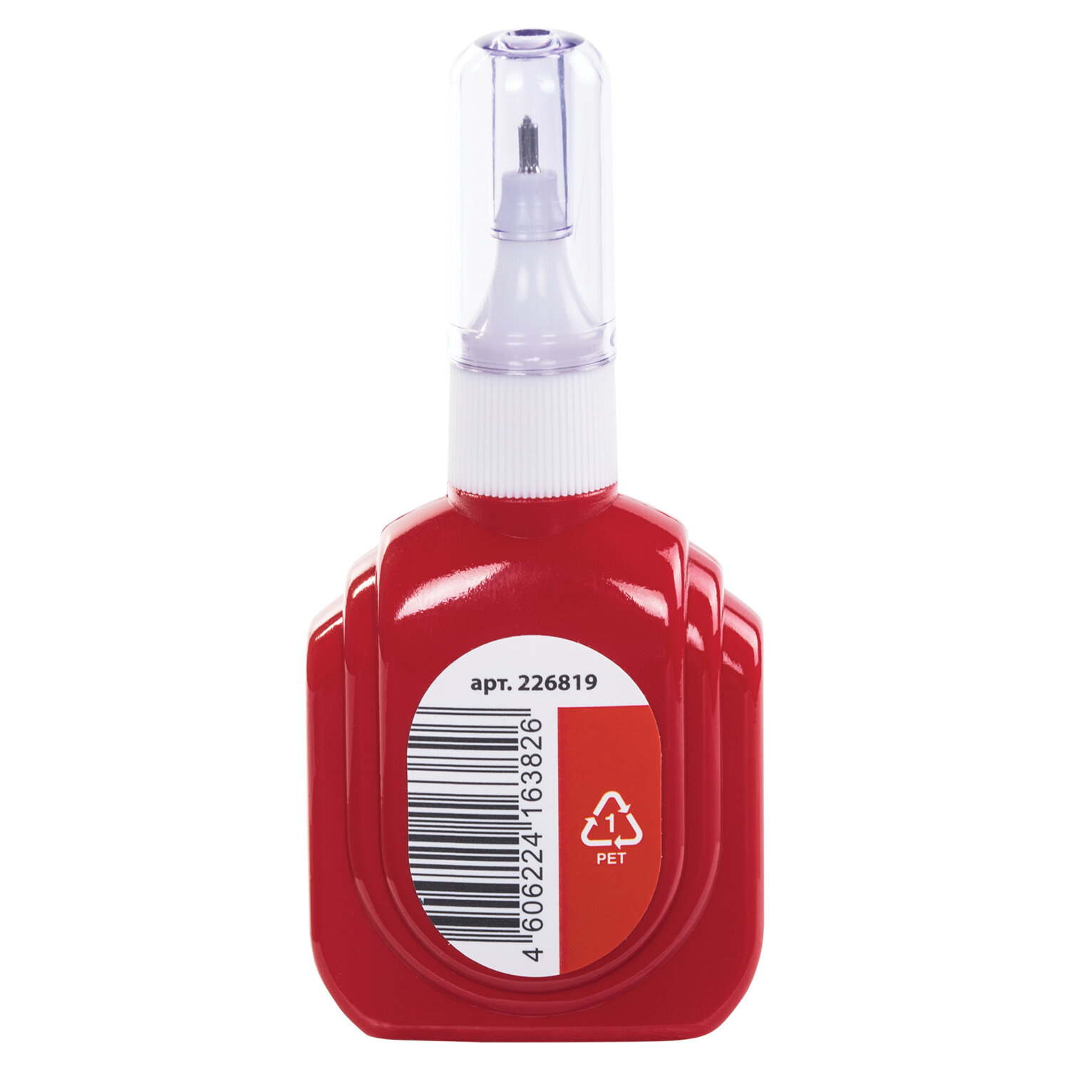 Быстросохнущая корректирующая ручка на спиртовой основе имеет увеличенный объем 13 мл и обладает устойчивостью к морозу. Корректор оснащен клапанным механизмом, и подача жидкости осуществляется с помощью нажатия на наконечник ручки. Перед началом использования ОБЯЗАТЕЛЬНО встряхните ручку. Не оказываете на корпус ручки повышенное физическое давление, за исключением случаев, когда ручкой давно не пользовались. Ручка-корректор BRAUBERG, 13 мл, металлический наконечник, 226819