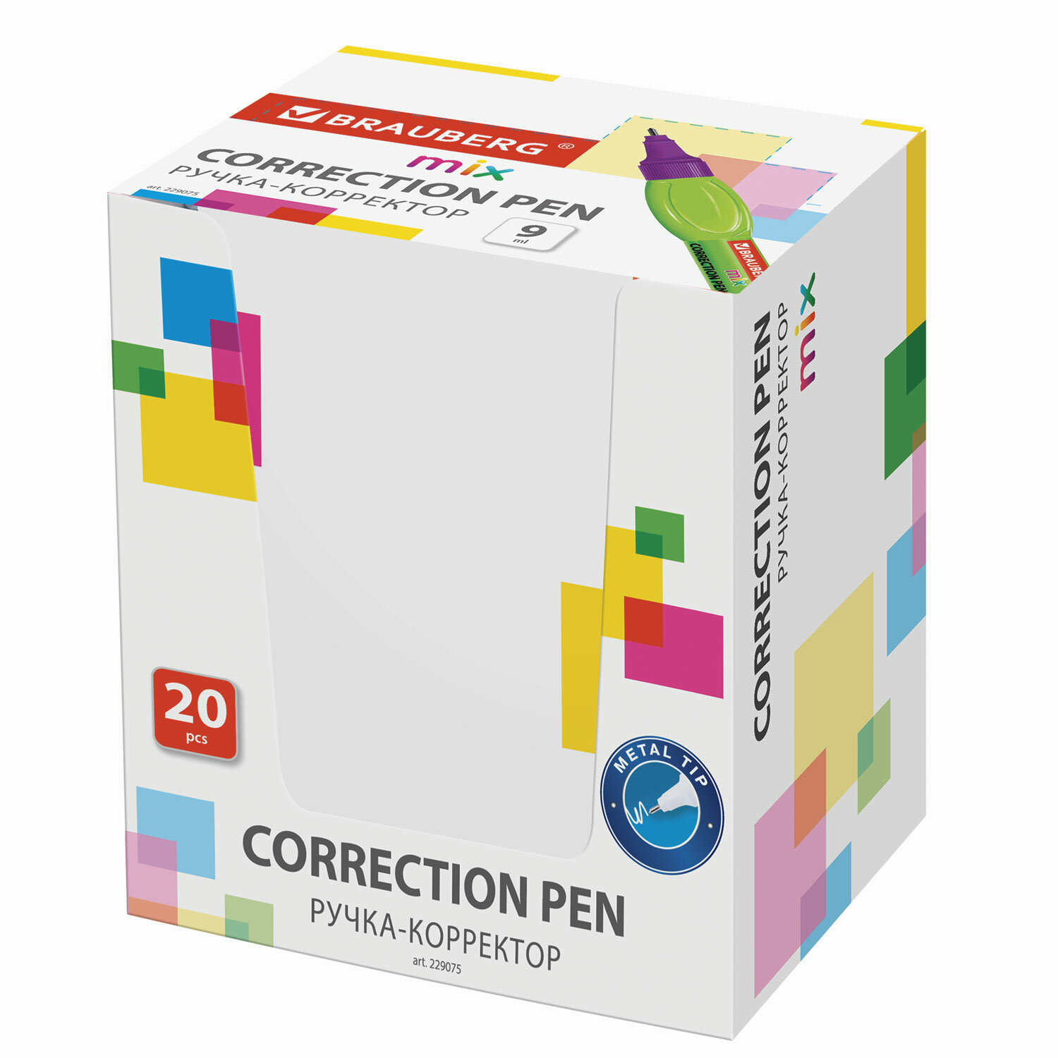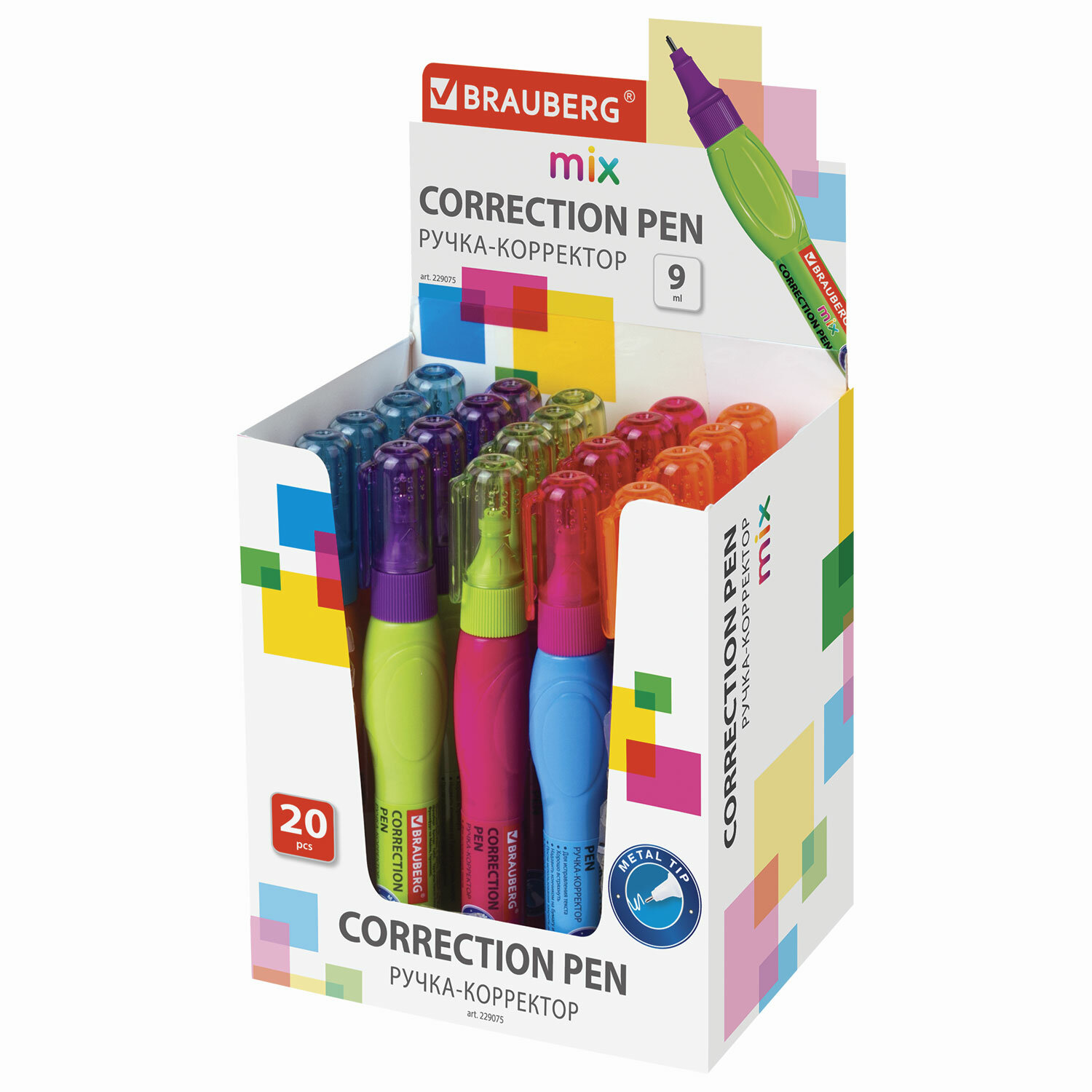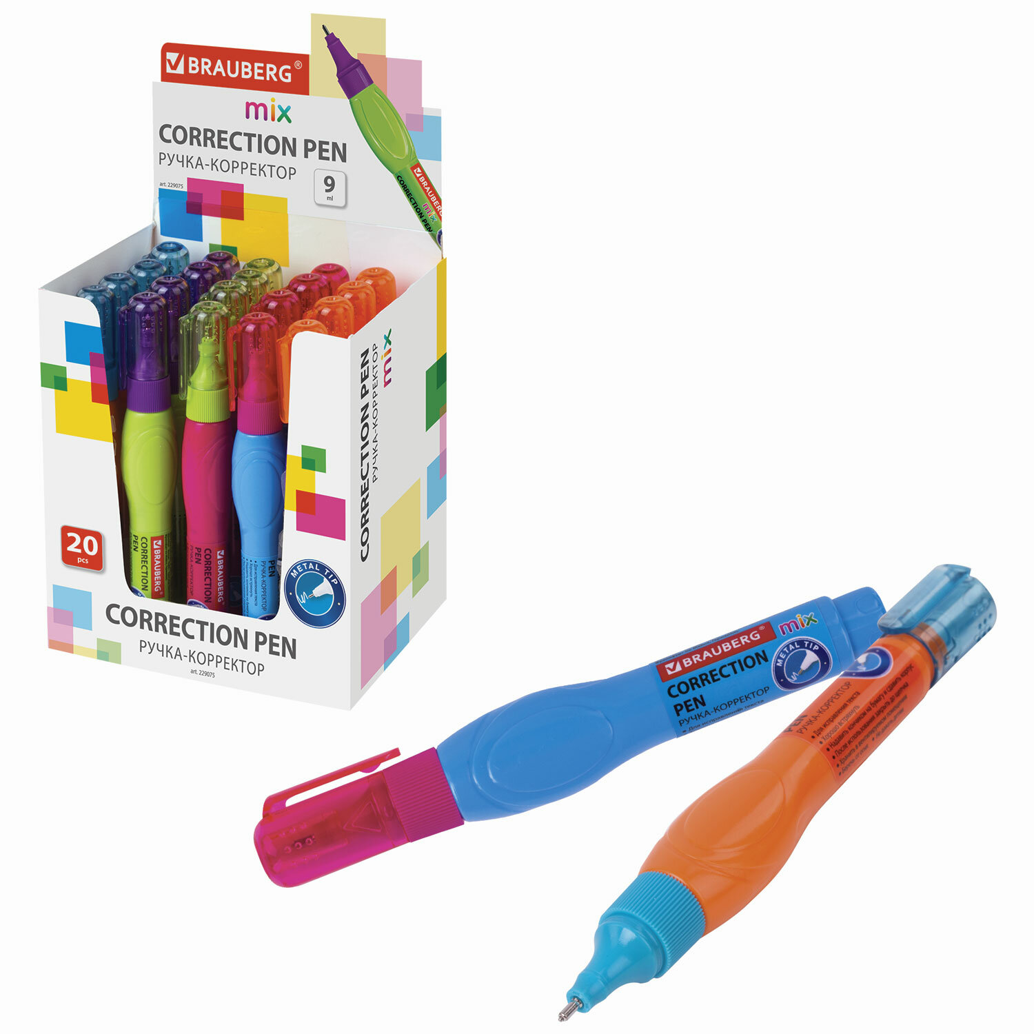 - Ручка-корректор BRAUBERG MIX, 9 мл, металлический наконечник, ассорти, 229075