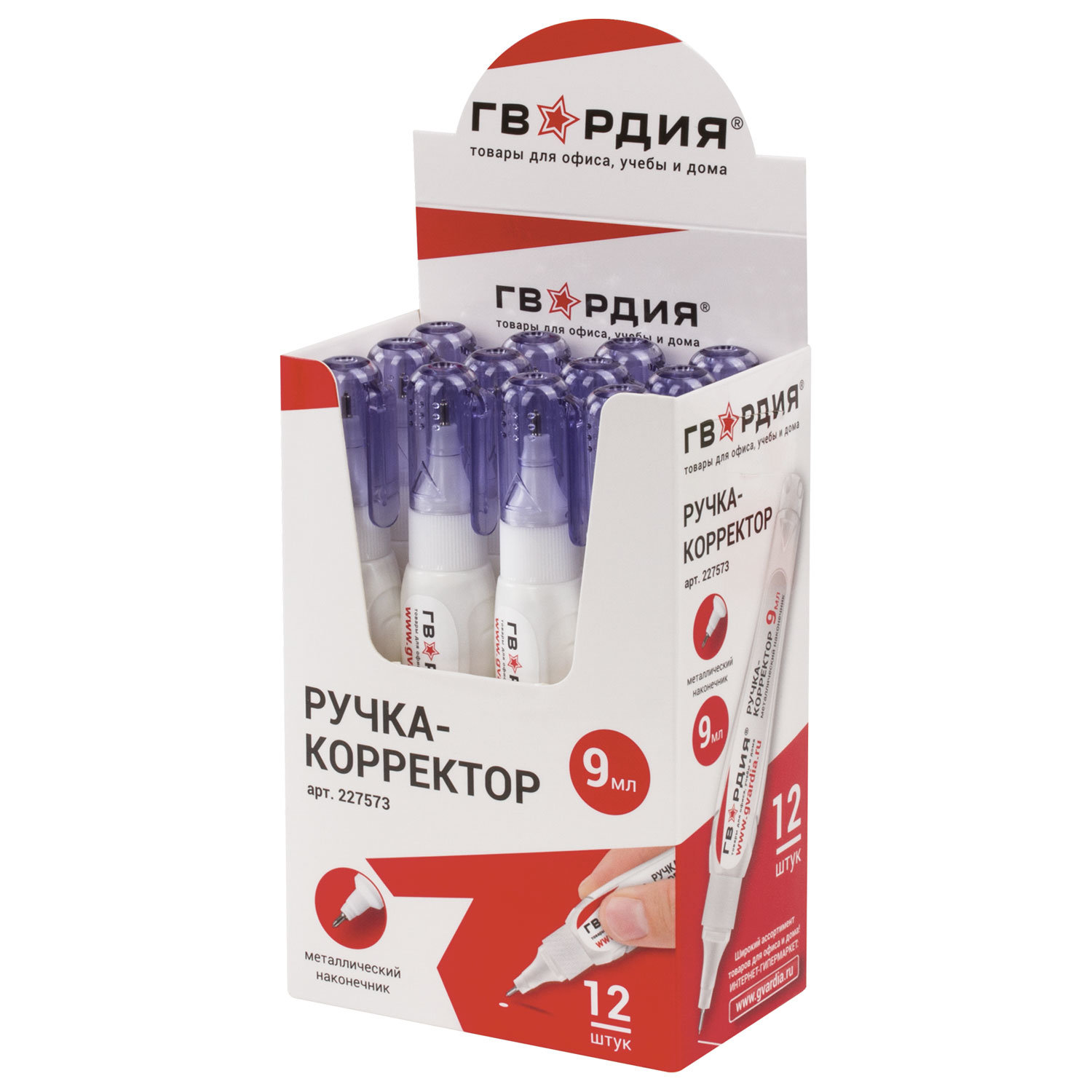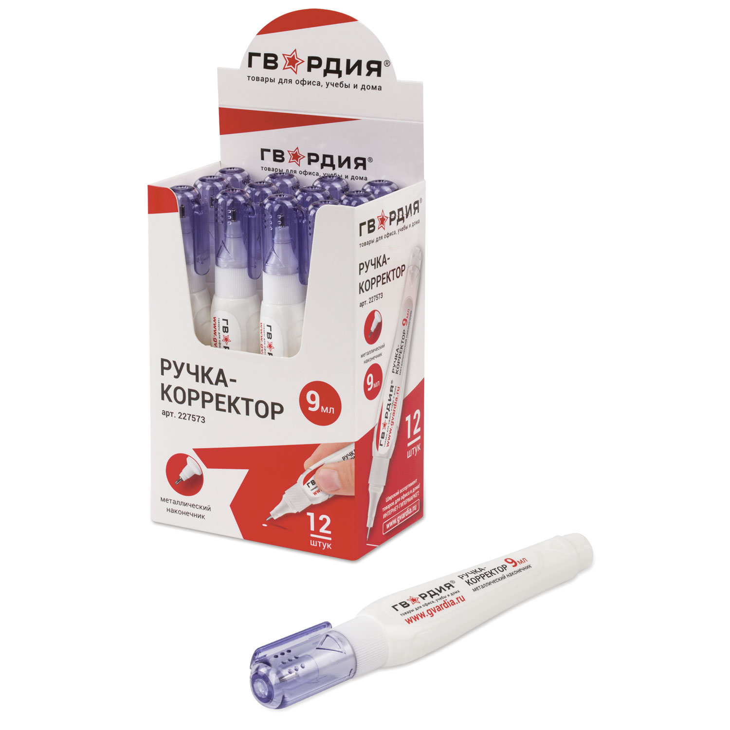 - Ручка-корректор ГВАРДИЯ, 9 мл, металлический наконечник, 227573