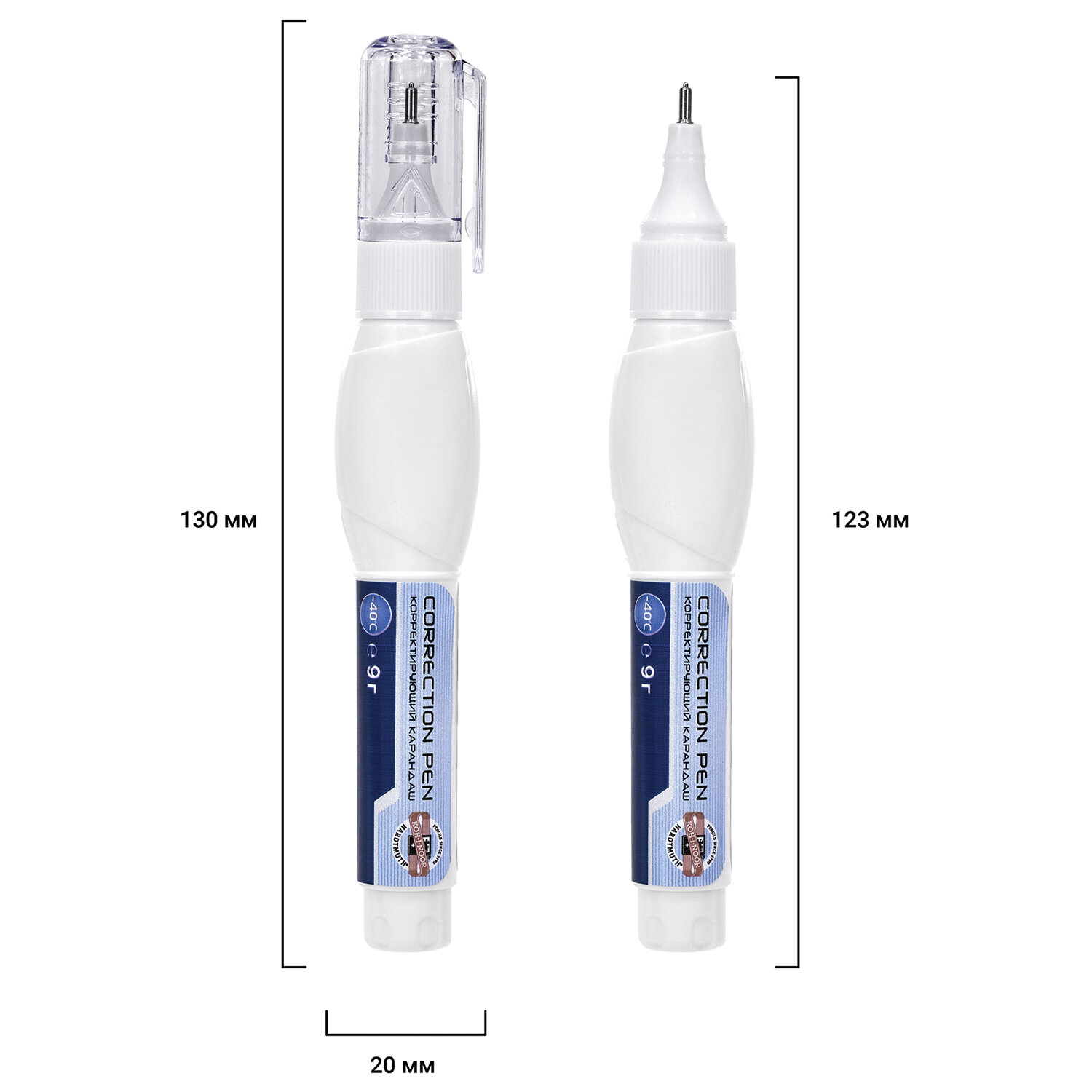 - Корректирующая ручка оснащена клапанным механизмом, и подача жидкости осуществляется с помощью нажатия на наконечник ручки.