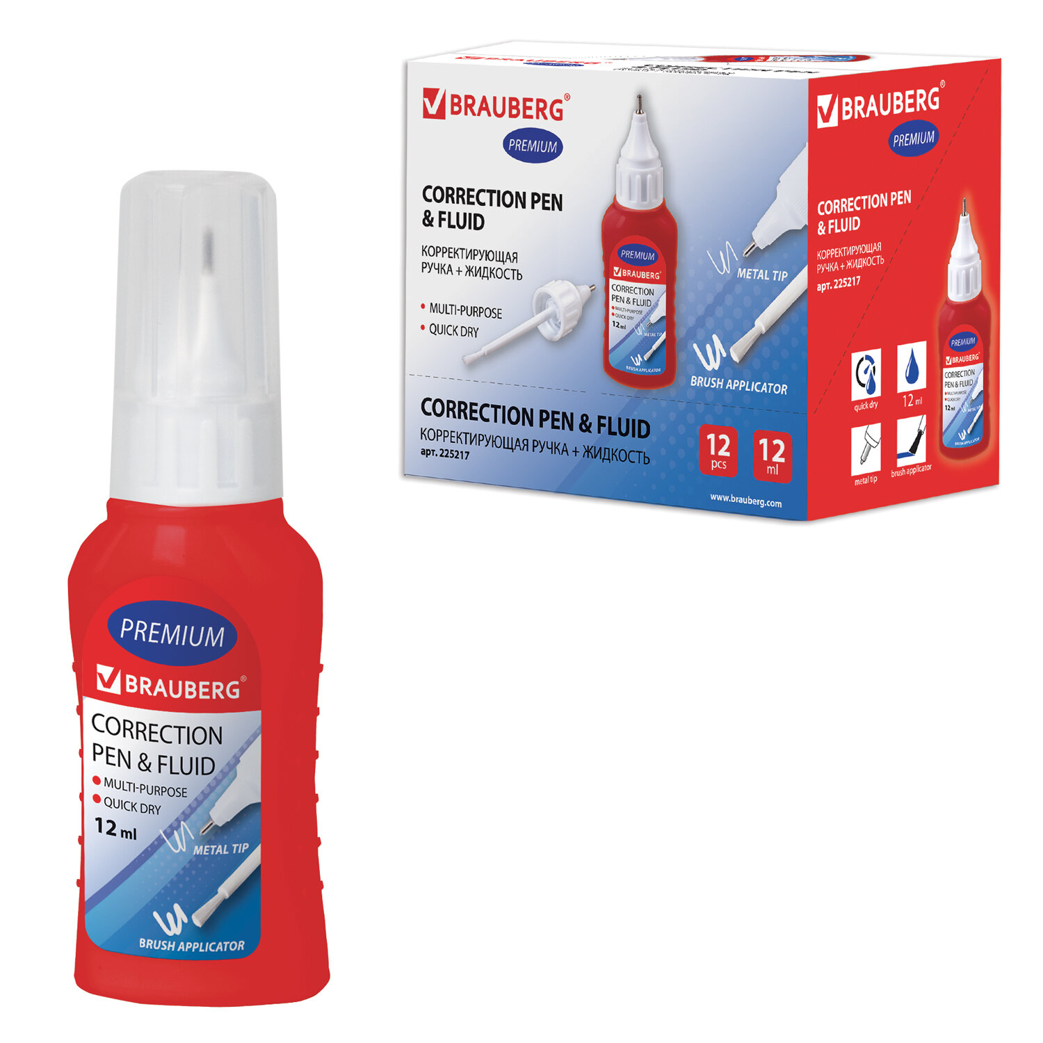 - Ручка-корректор + корректирующая жидкость BRAUBERG, 12 мл, 2 в 1: металлический наконечник + кисточка, 225217