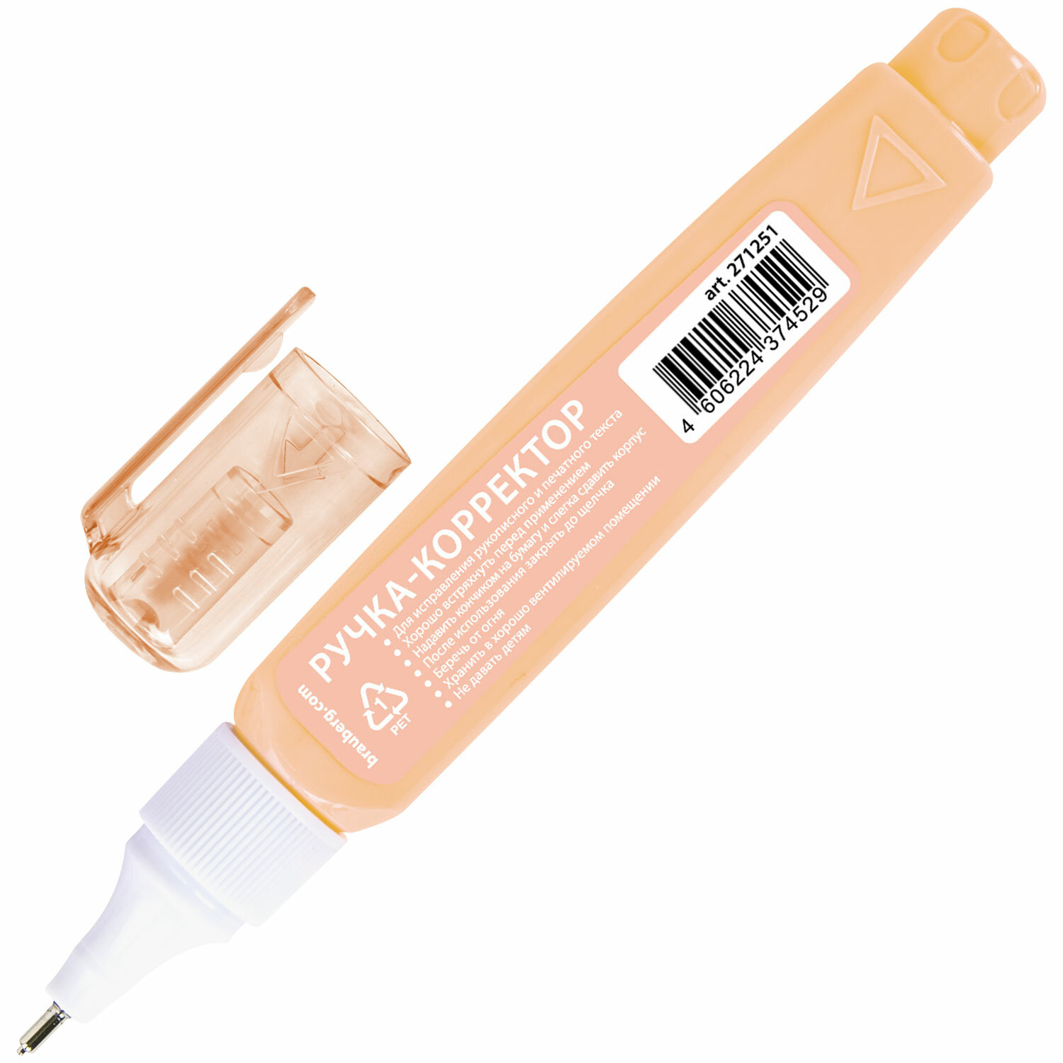 - Ручка-корректор в пастельном корпусе BRAUBERG PASTEL, 9 мл, металлический наконечник, ассорти, 271251