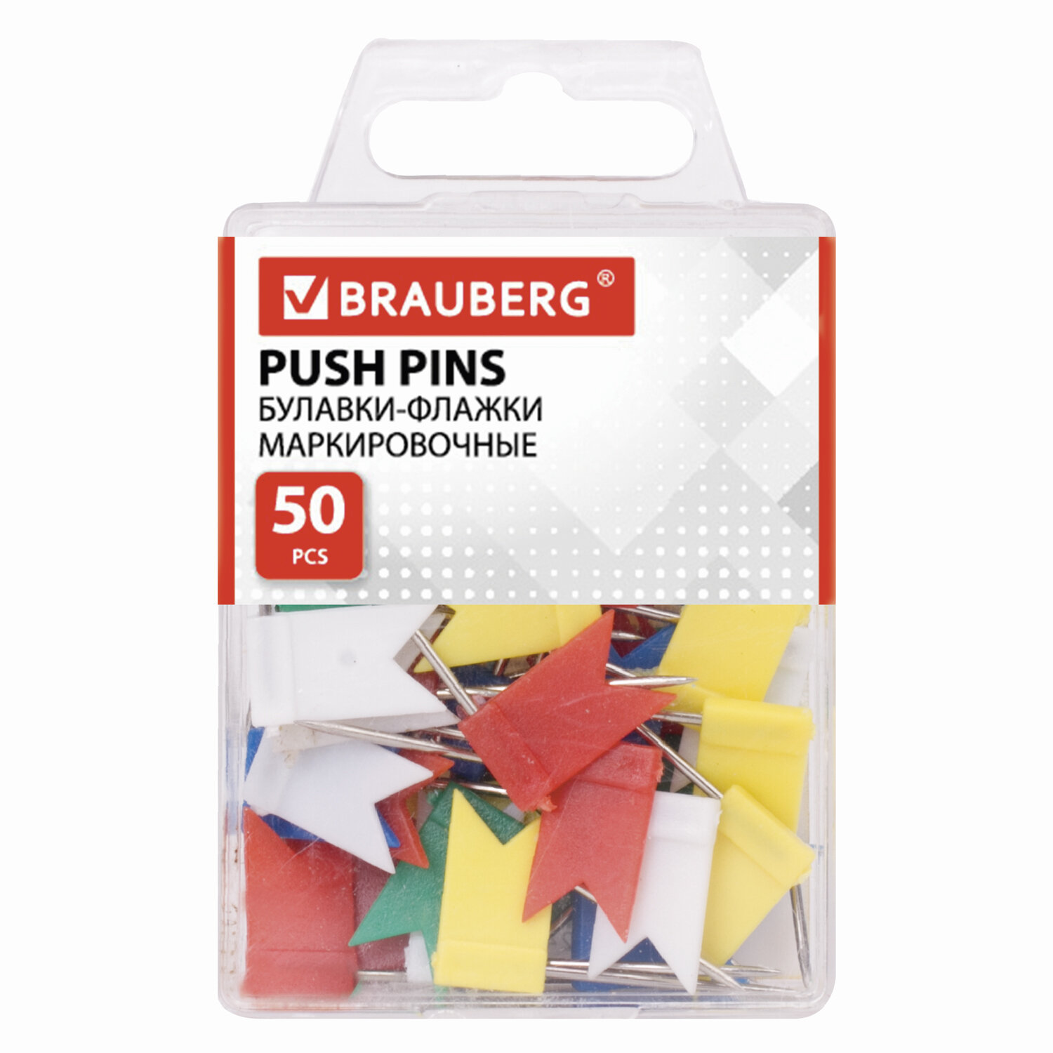- Булавки-флажки маркировочные BRAUBERG, цветные, 50 шт., пластиковая коробка, европодвес, 221537