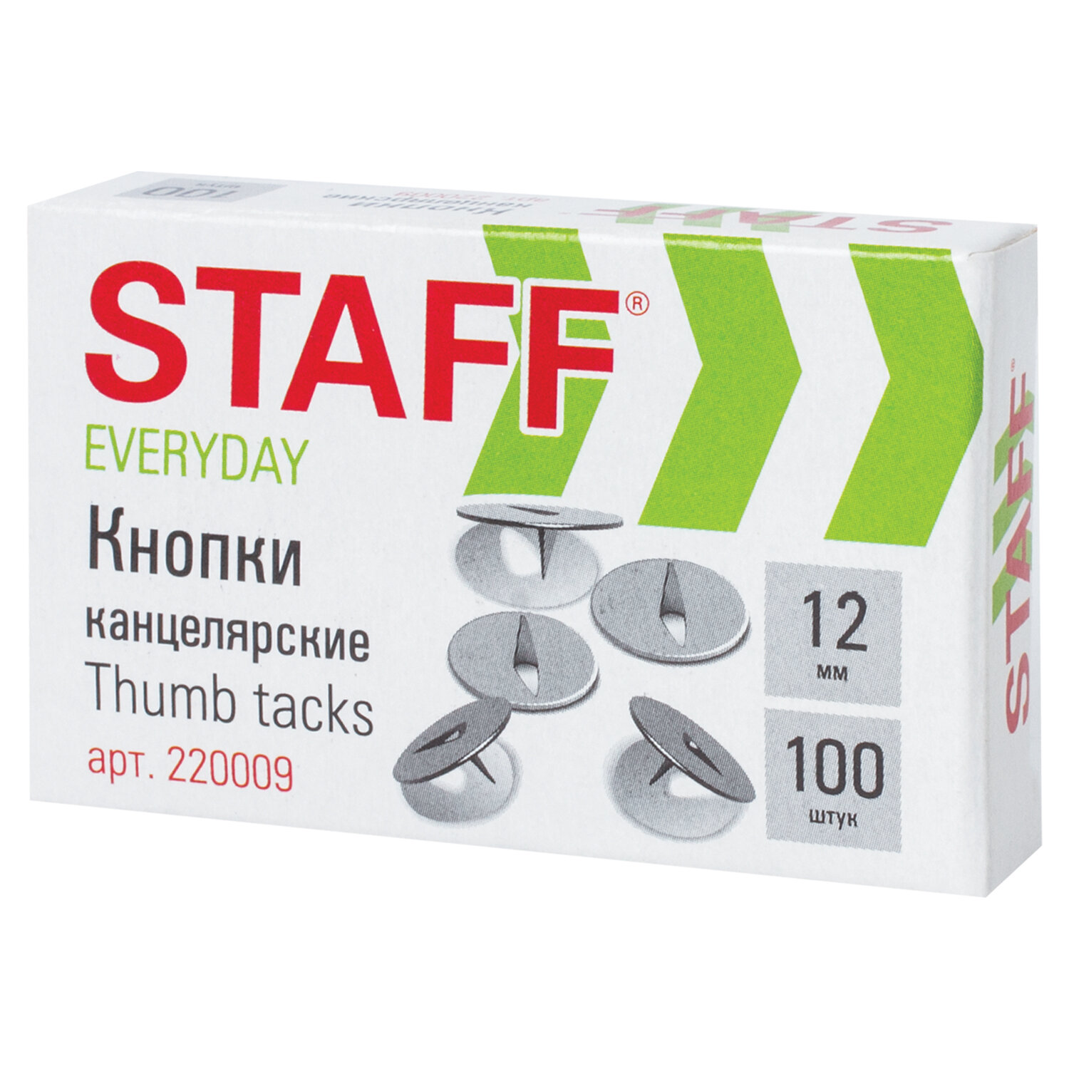 - Кнопки канцелярские STAFF "EVERYDAY", 12 мм х 100 шт., РОССИЯ, в картонной коробке, 220009