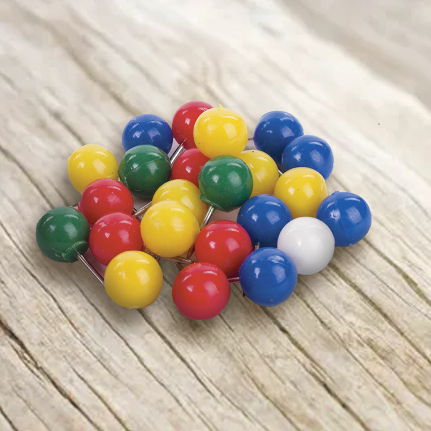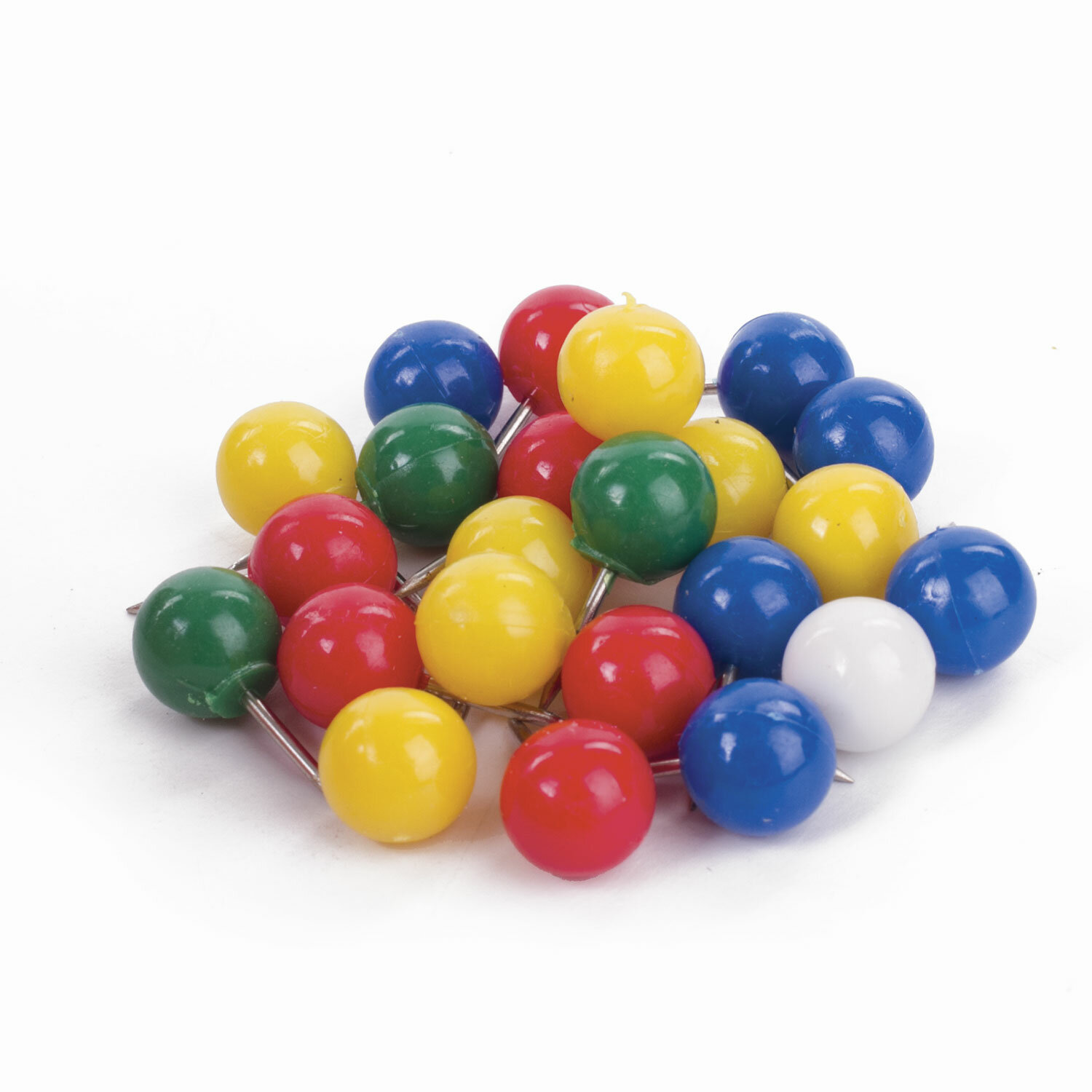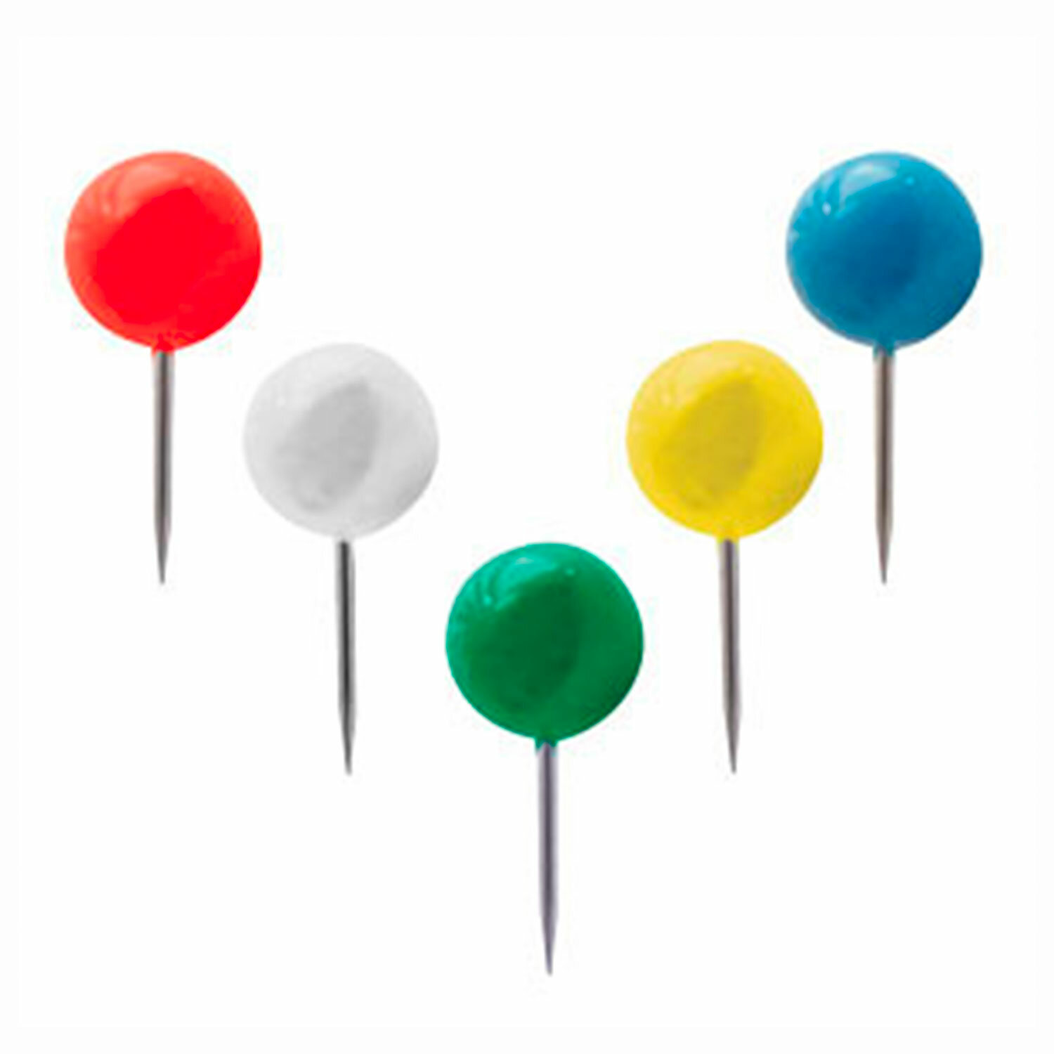 Кнопки с цветной круглой пластиковой шляпкой диаметром 8 мм и стальным острием длиной 10 мм. 50 штук в картонной коробке. Силовые кнопки-гвоздики BRAUBERG, цветные (шарики), 50 шт., в картонной коробке, 221550