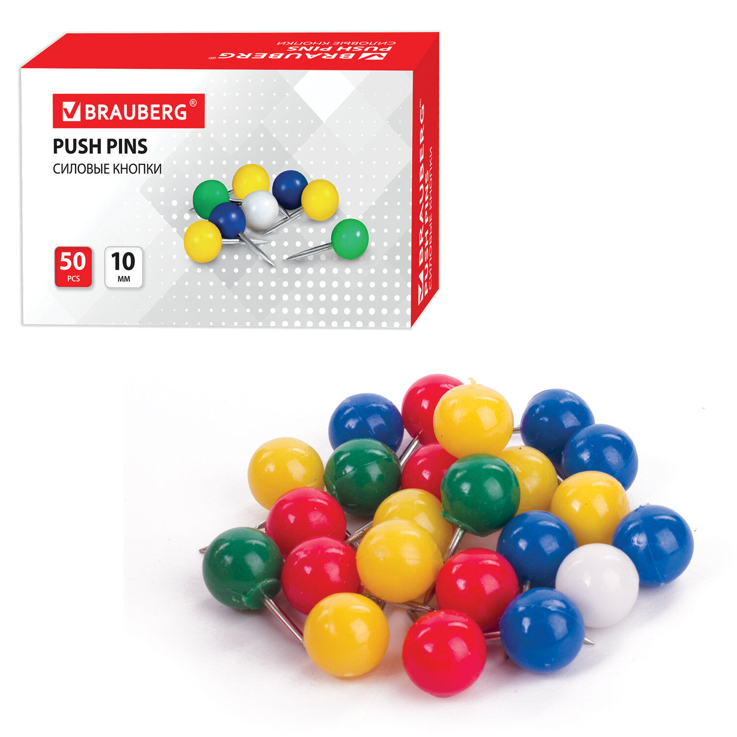 - Силовые кнопки-гвоздики BRAUBERG, цветные (шарики), 50 шт., в картонной коробке, 221550