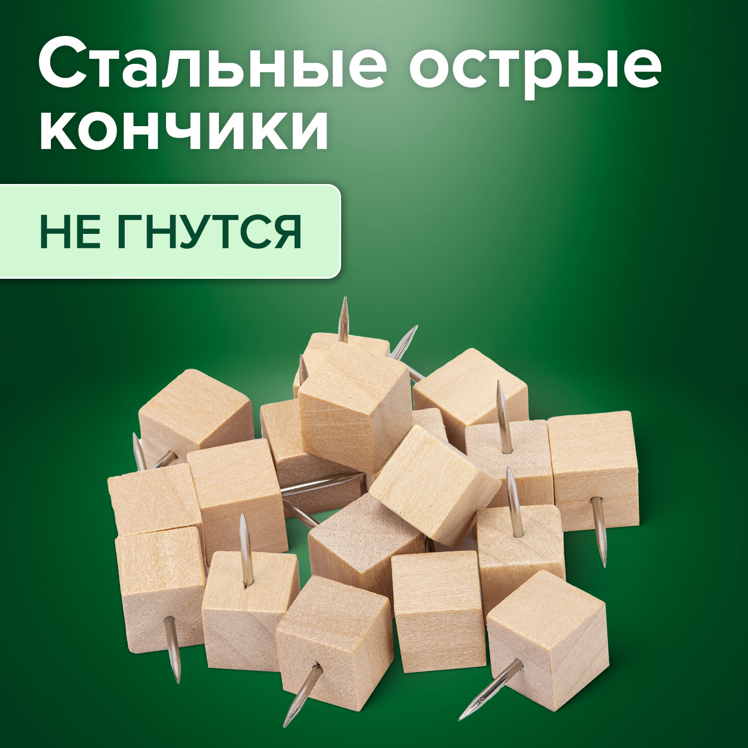 - Силовые кнопки-гвоздики BRAUBERG WOOD, деревянные (кубики), 50 штук, 10 мм, 272762