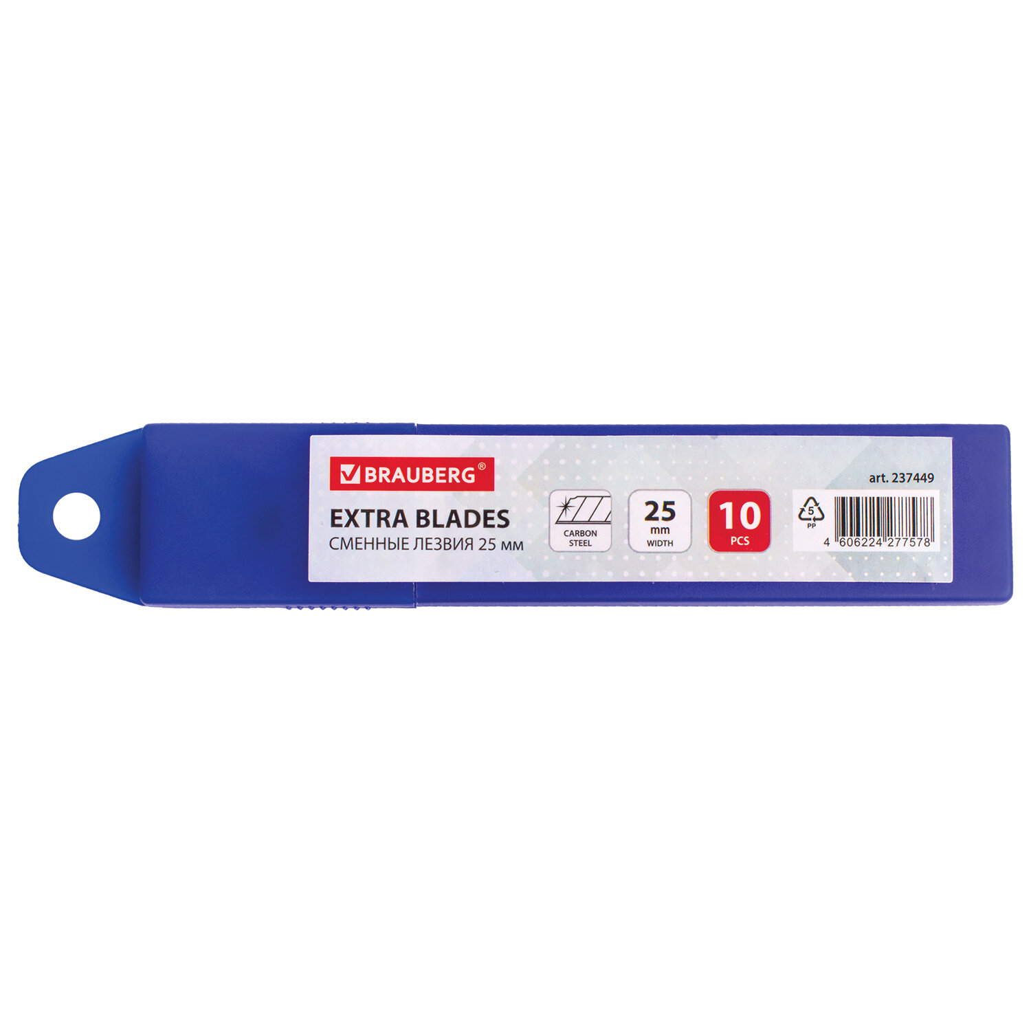 - Лезвия для ножей ширина 25 мм BRAUBERG, КОМПЛЕКТ 10 шт., в пластиковом пенале, 237449