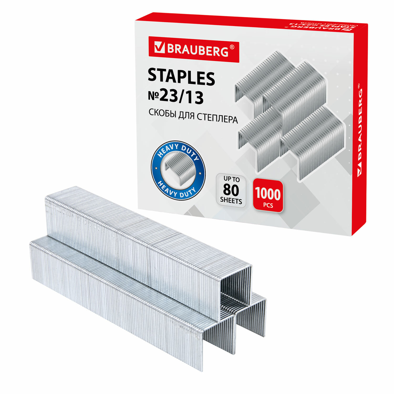 Скобы для степлера №23/13, 1000 штук, BRAUBERG, от 30 до 80 листов, 220951