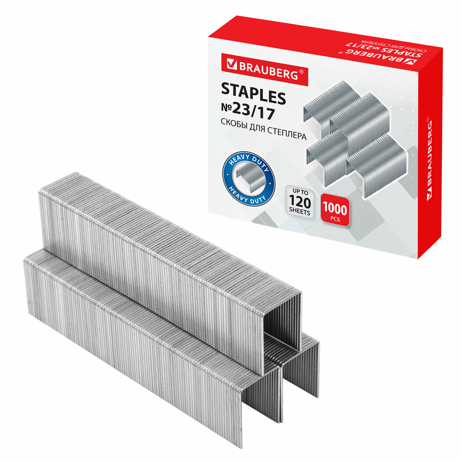 - Скобы для степлера №23/17, 1000 штук, BRAUBERG, от 50 до 120 листов, 221164