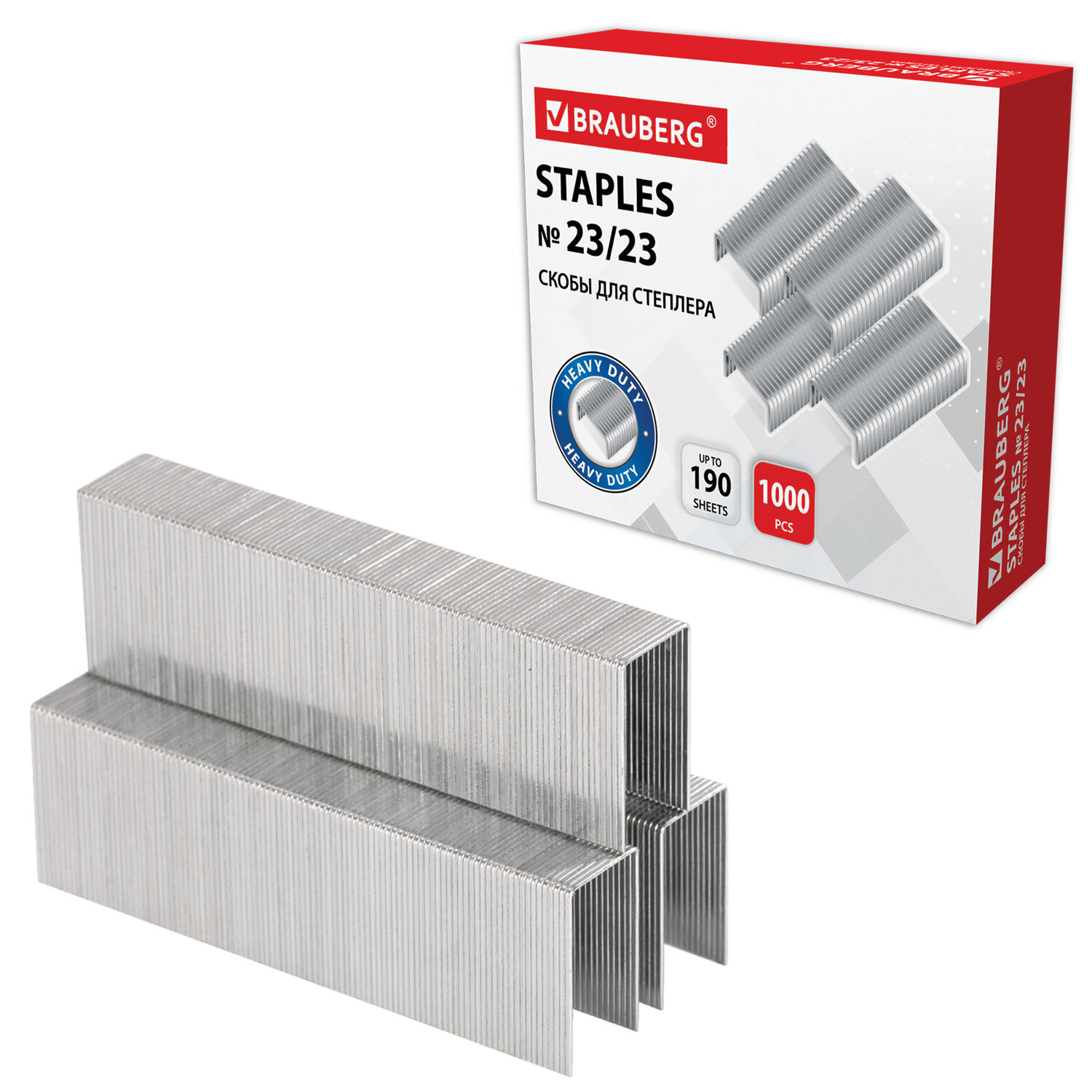 - Скобы для степлера №23/23, 1000 штук, СВЕРХПРОЧНЫЕ, от 110 до 190 листов, BRAUBERG, 227718