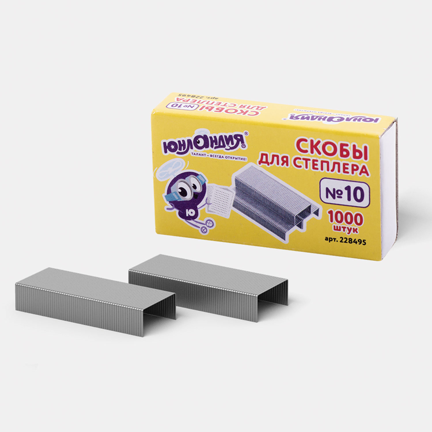 - Скобы для степлера ЮНЛАНДИЯ, №10, 1000 штук, 228495