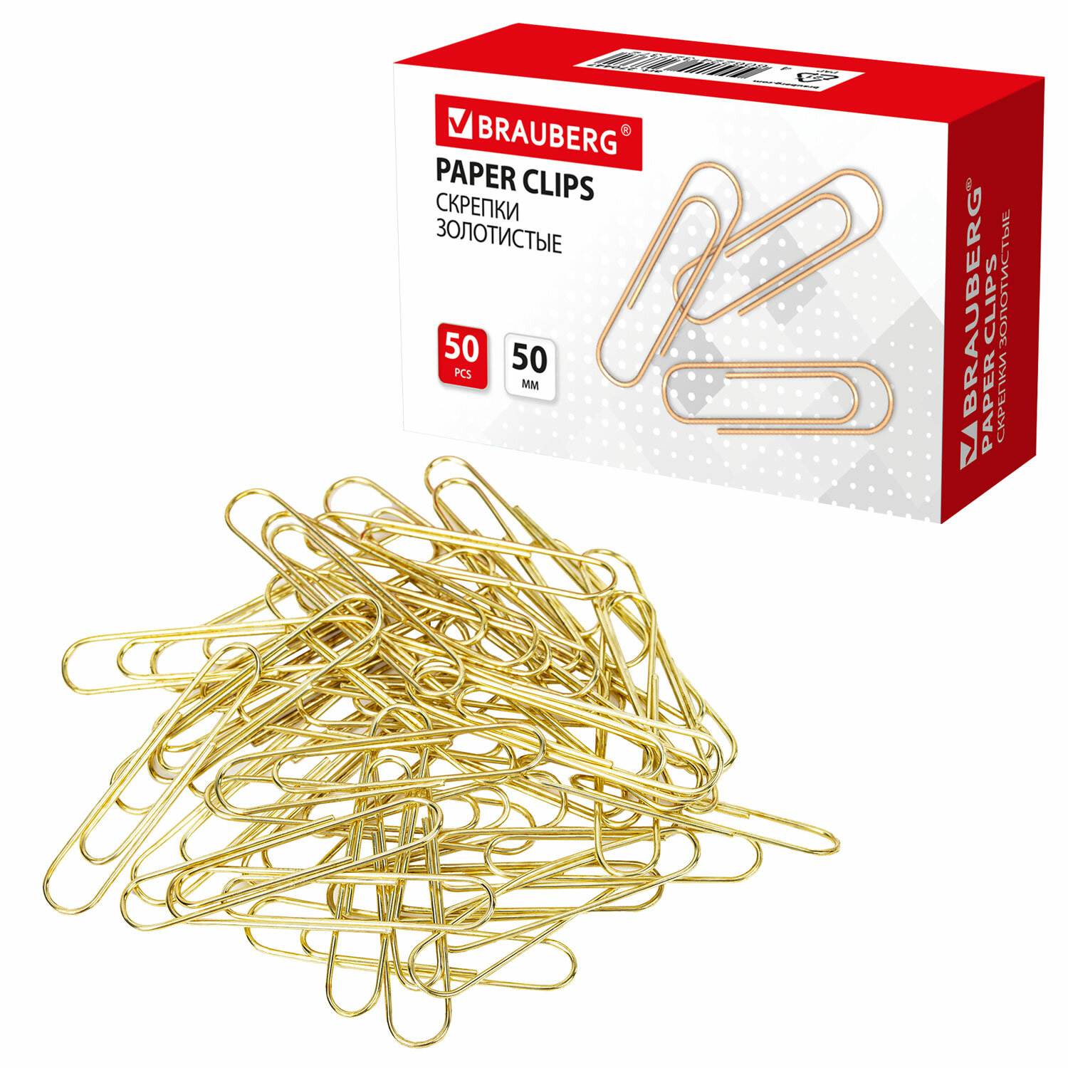 - Скрепки большие 50 мм, BRAUBERG, золотистые, 50 шт., в картонной коробке, 270447