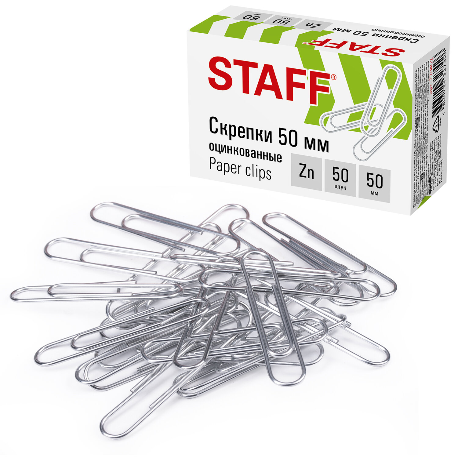 - Скрепки большие 50 мм, STAFF, оцинкованные, 50 шт., в картонной коробке, 270452