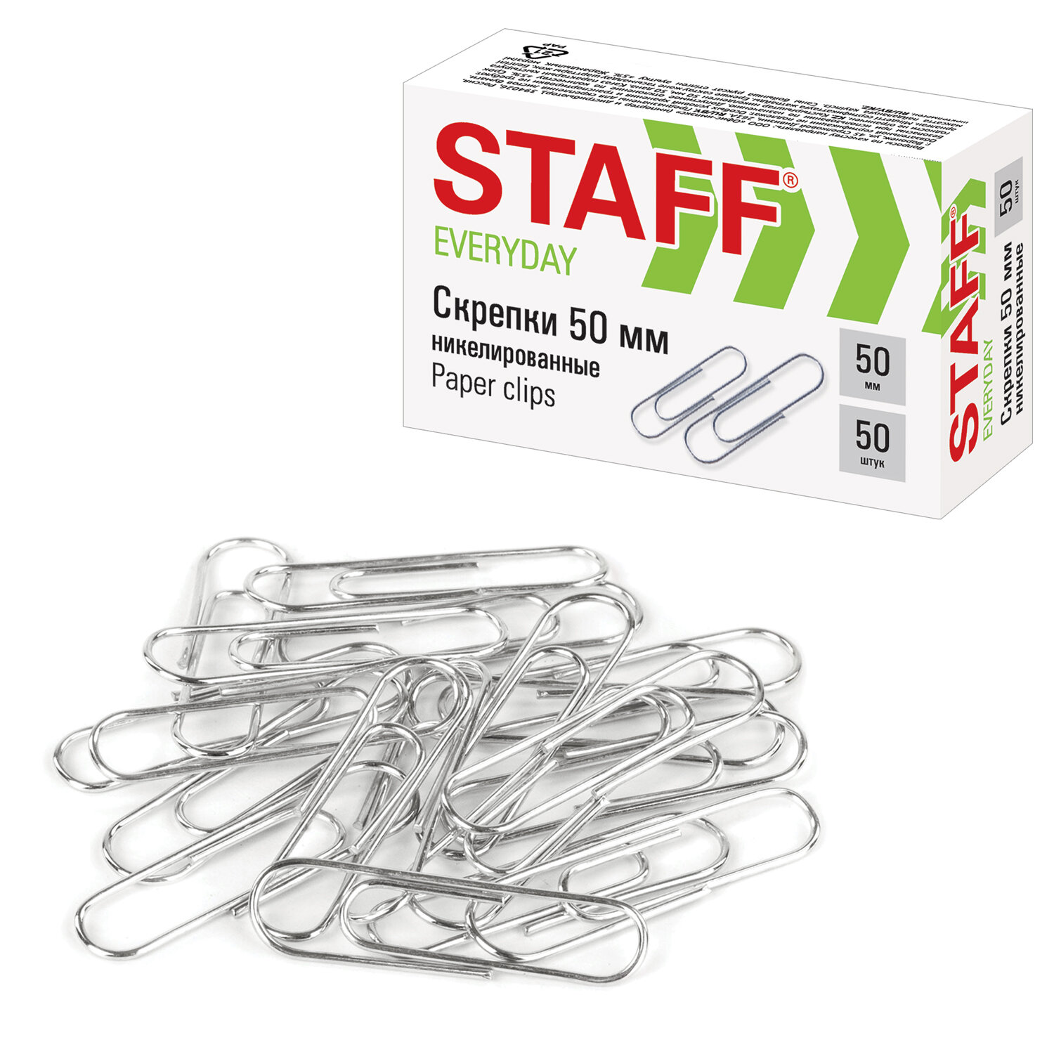 - Скрепки большие 50 мм, STAFF "EVERYDAY", никелированные, 50 шт., в картонной коробке, 226759