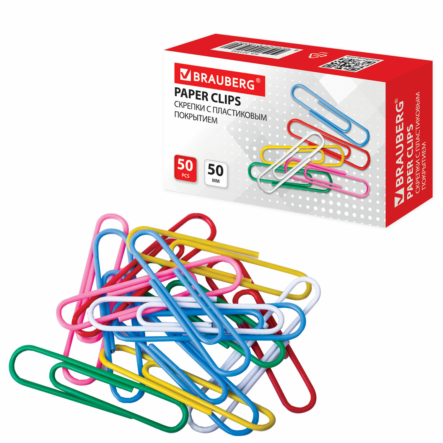 - Скрепки большие 50 мм, цветные, 50 шт., в картонной коробке, BRAUBERG, 221533