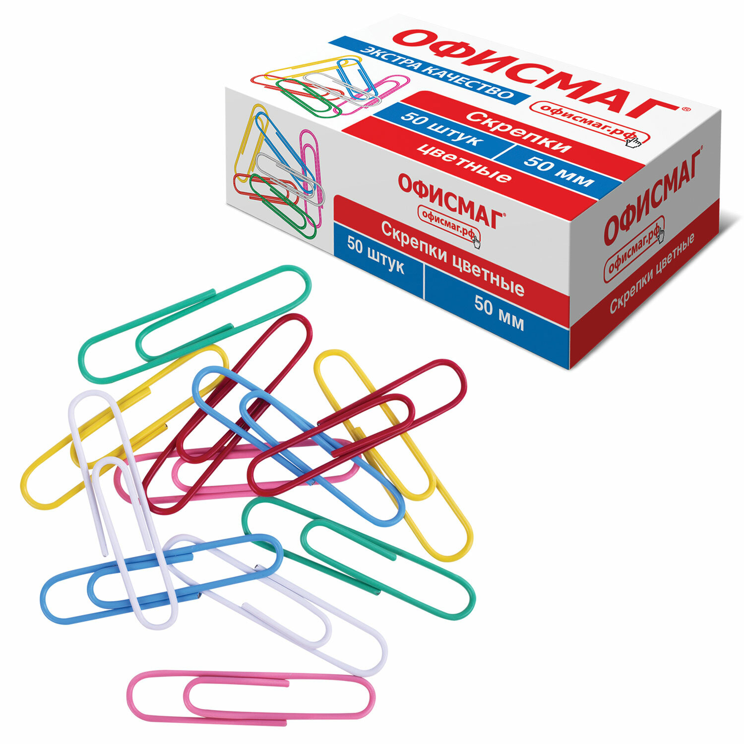 - Скрепки большие ЭКСТРА ОФИСМАГ 50 мм цветные 50 штук, 271318