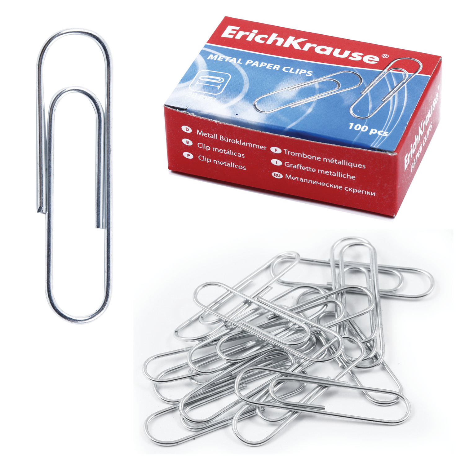 - Скрепки ERICH KRAUSE, 28 мм, оцинкованные, 100 штук, в картонной коробке, 7855