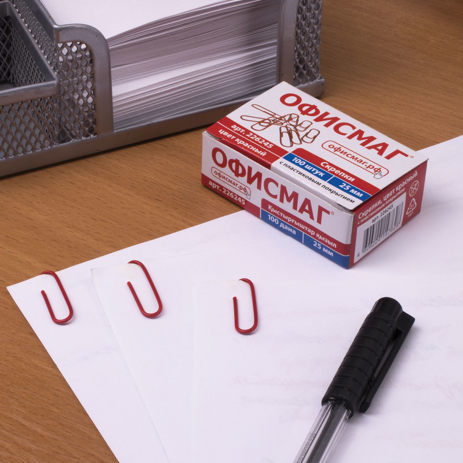 - Скрепки ОФИСМАГ, 25 мм, красные, 100 шт., в картонной коробке, 226245