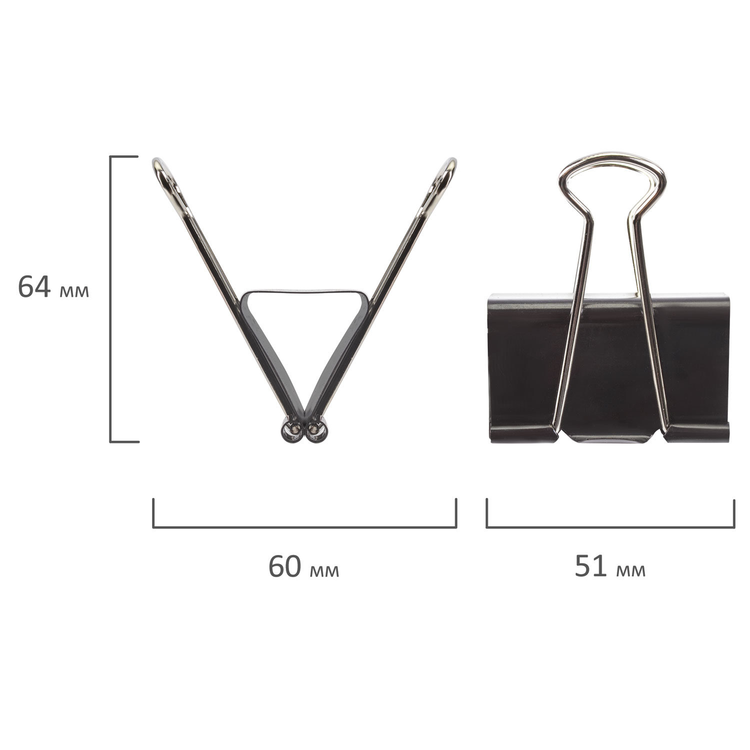 - Зажимы для бумаг большие BRAUBERG, КОМПЛЕКТ 12 шт., 51 мм, на 230 листов, черные, картонная коробка, 220561