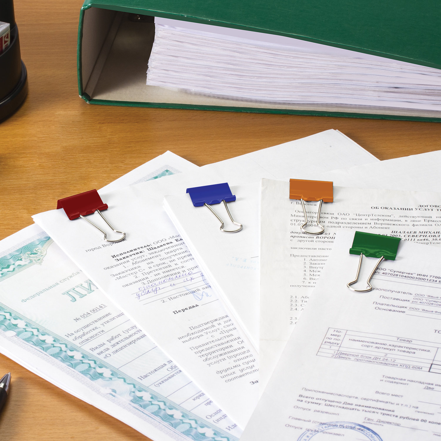 - Зажимы для бумаг ОФИСМАГ, КОМПЛЕКТ 48 шт., 25 мм, на 100 листов, цветные, в пластиковом цилиндре, 222091