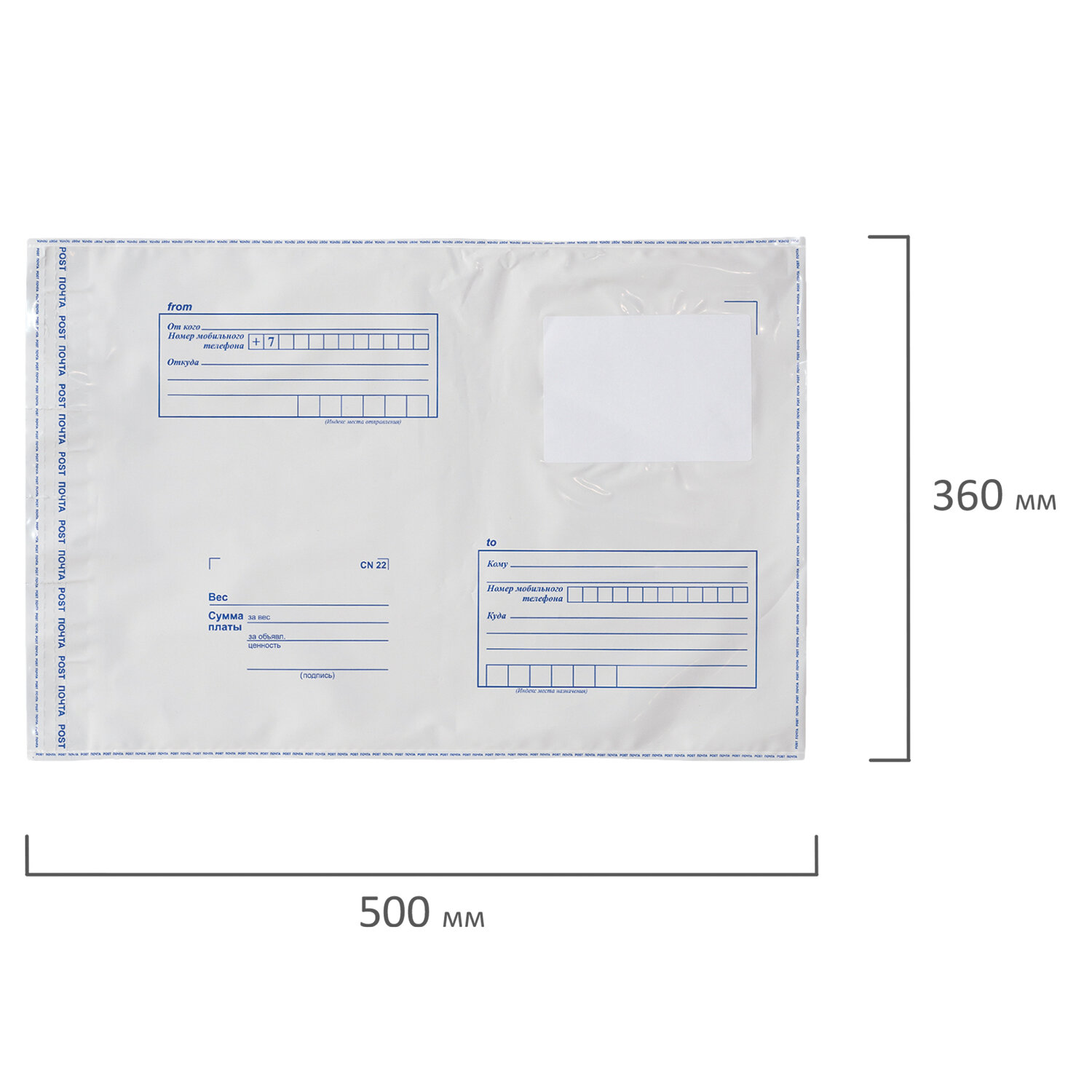 На передней стороне конверта имеются адресные указатели: t;От когоt;, t;Откудаt;, t;Комуt;, t;Кудаt;. Отрывная полоса типа STRIP обеспечивает легкое запечатывание пакета.