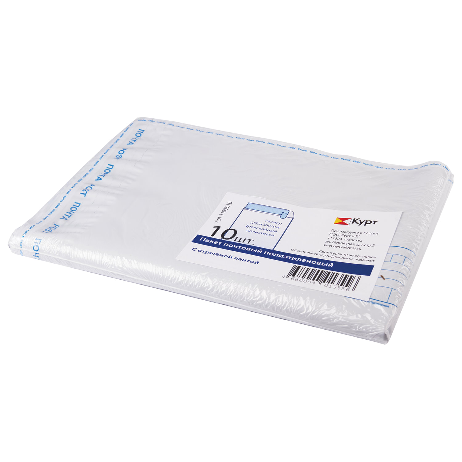 - Конверт-пакеты ПОЛИЭТИЛЕН E4 (280х380 мм) до 500 л., отрывная лента, "Куда-Кому", КОМПЛЕКТ 10 шт., 11005.10