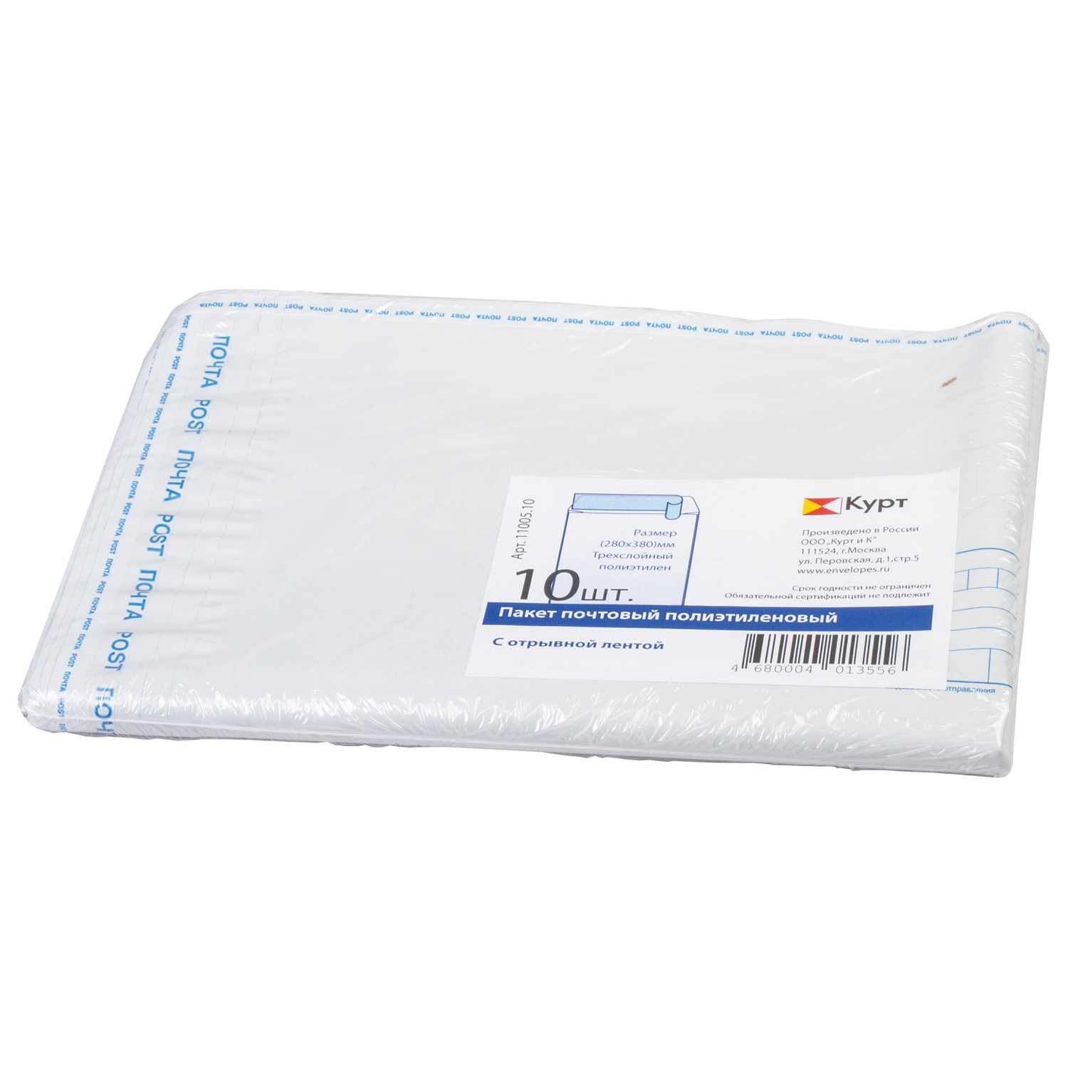 - Конверт-пакеты ПОЛИЭТИЛЕН В4 (250х353 мм) до 300 л., отрывная лента, "Куда-Кому", КОМПЛЕКТ 10 шт., 11004.10