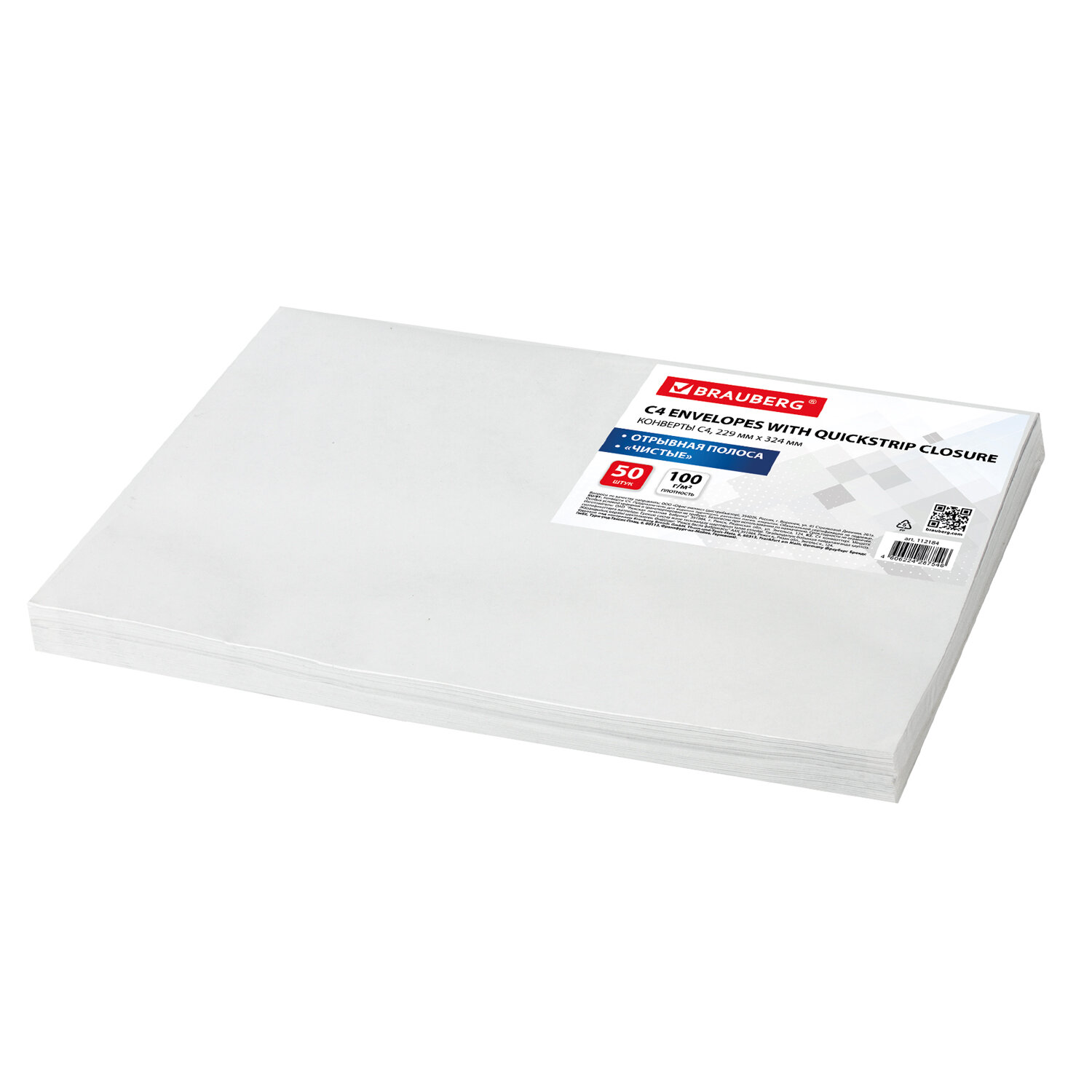- Конверты С4 (229х324 мм), отрывная лента, 100 г/м2, КОМПЛЕКТ 50 шт., BRAUBERG, 112184