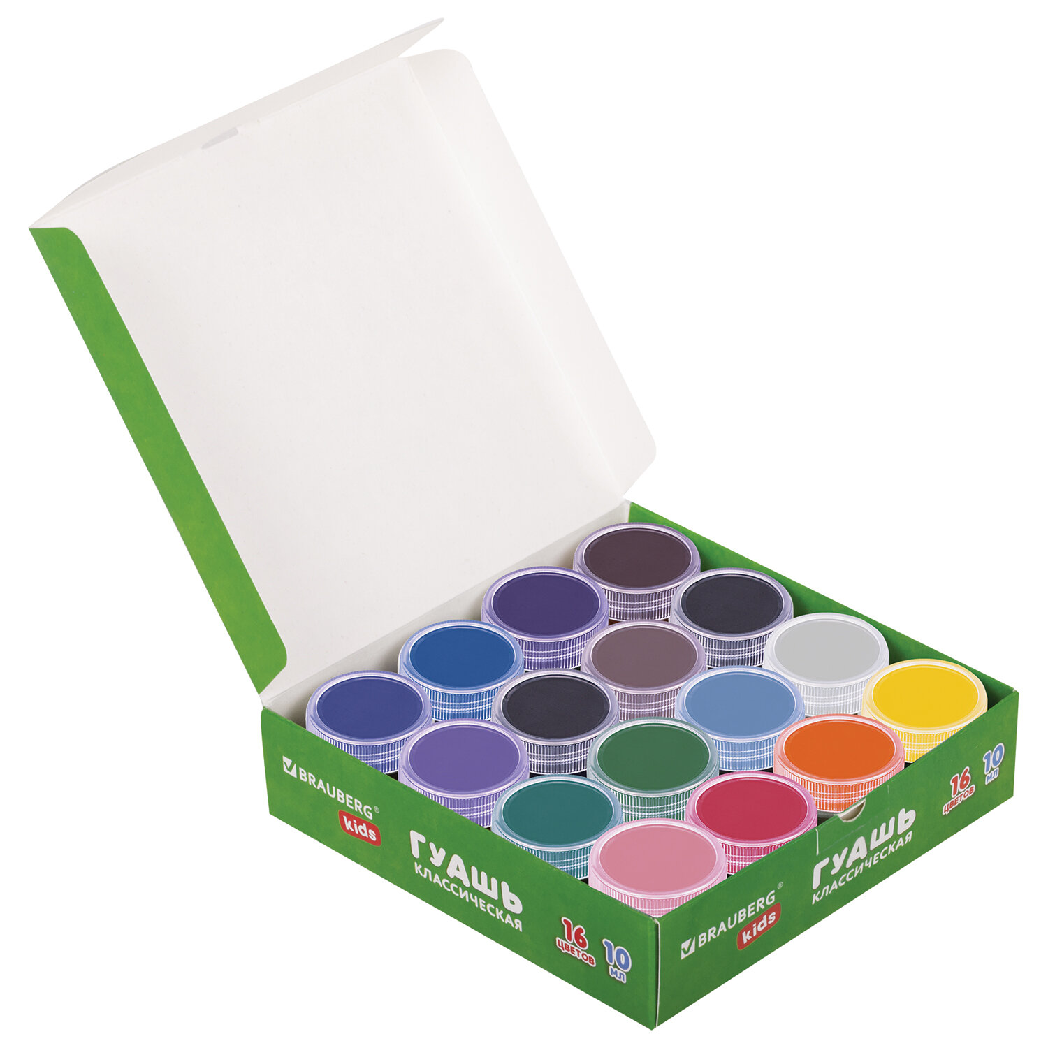 - Гуашь BRAUBERG KIDS "NEW", 16 цветов по 10 мл, 192375