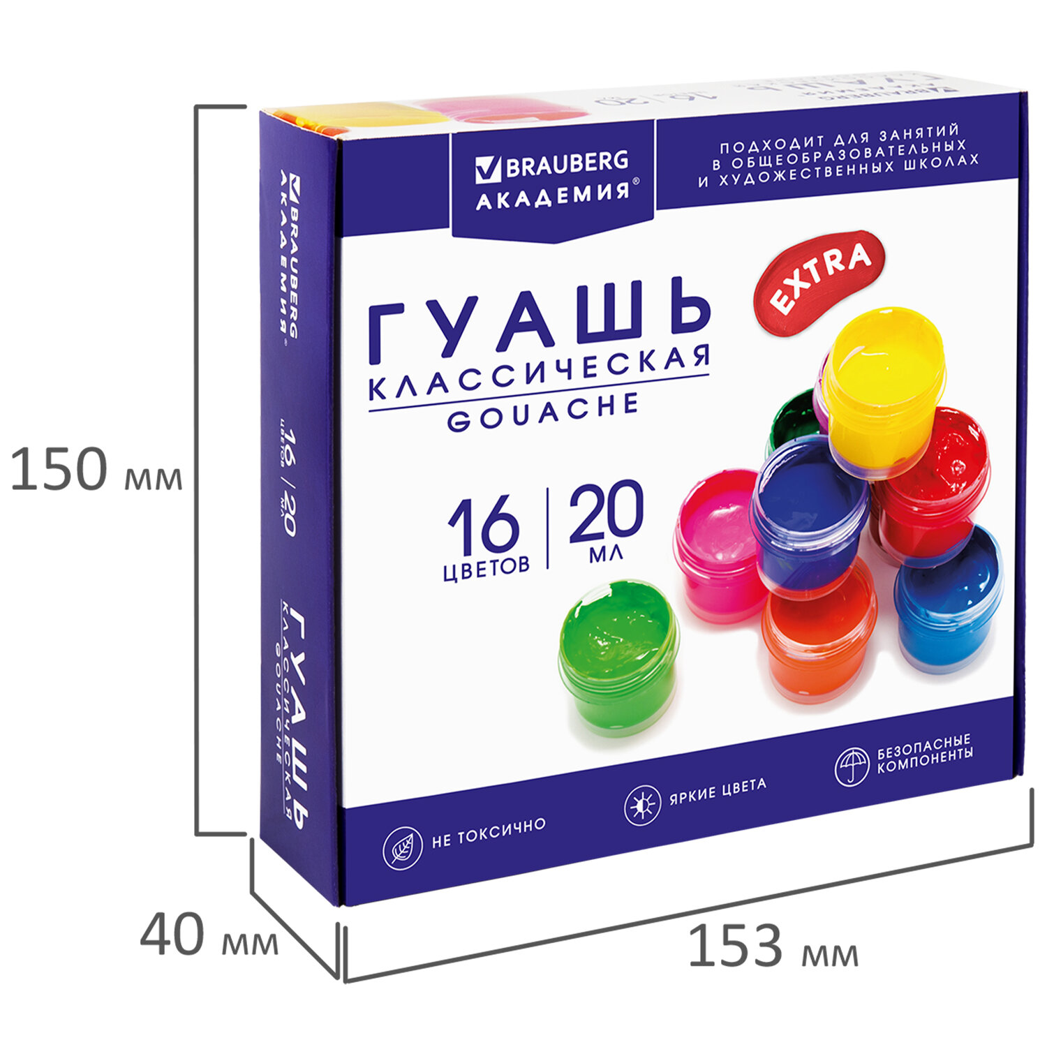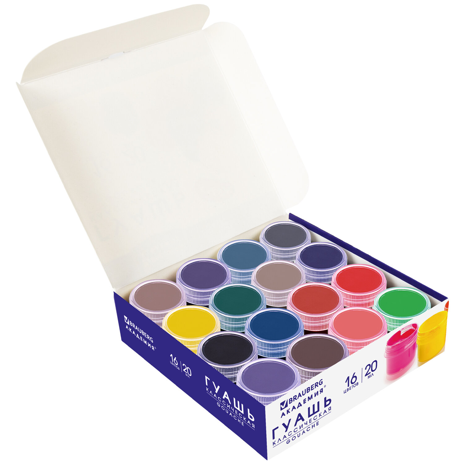 - Гуашь BRAUBERG "АКАДЕМИЯ КЛАССИЧЕСКАЯ ЭКСТРА", 16 цветов по 20 мл, 192373