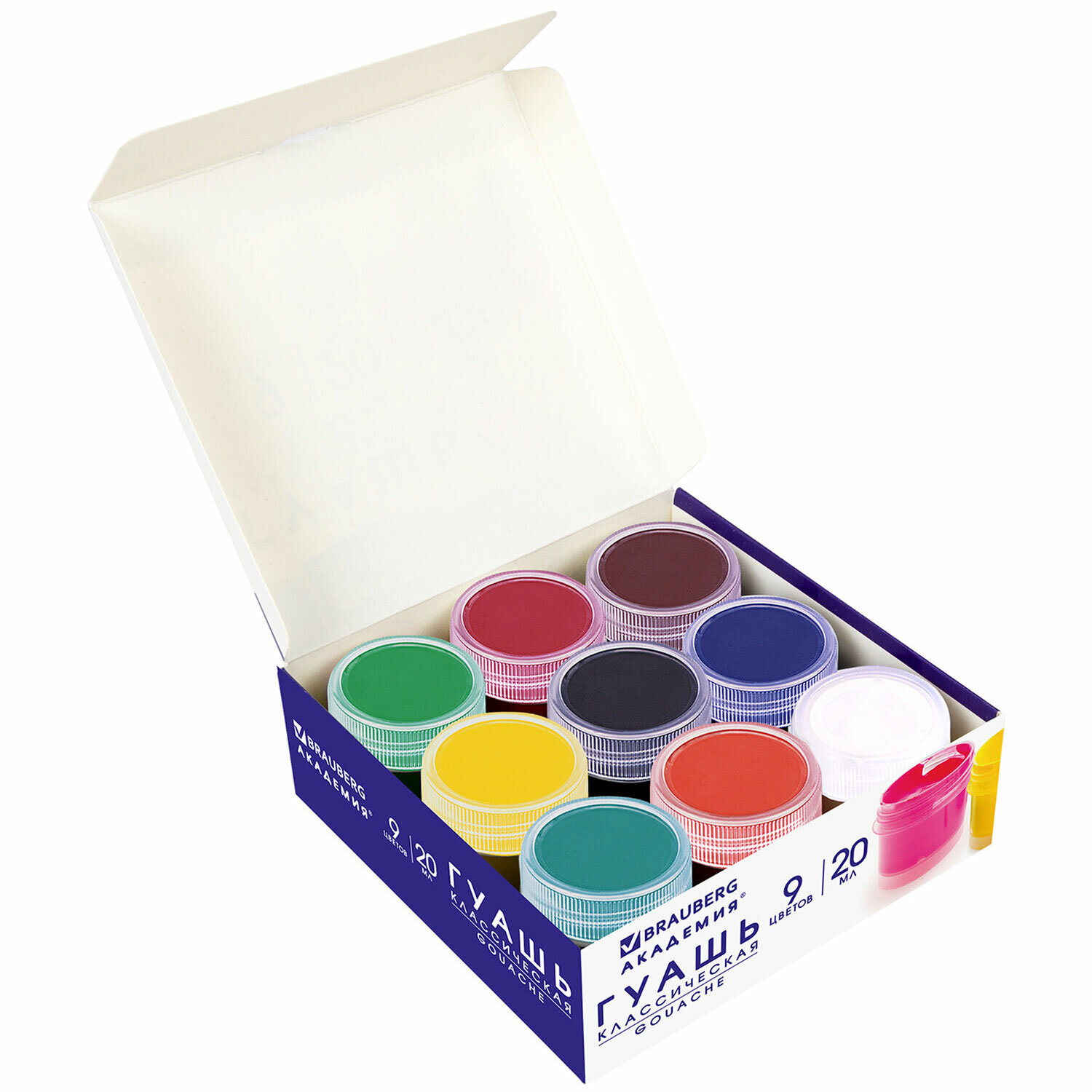 - Гуашь BRAUBERG "АКАДЕМИЯ КЛАССИЧЕСКАЯ ЭКСТРА", 9 цветов по 20 мл, 192372