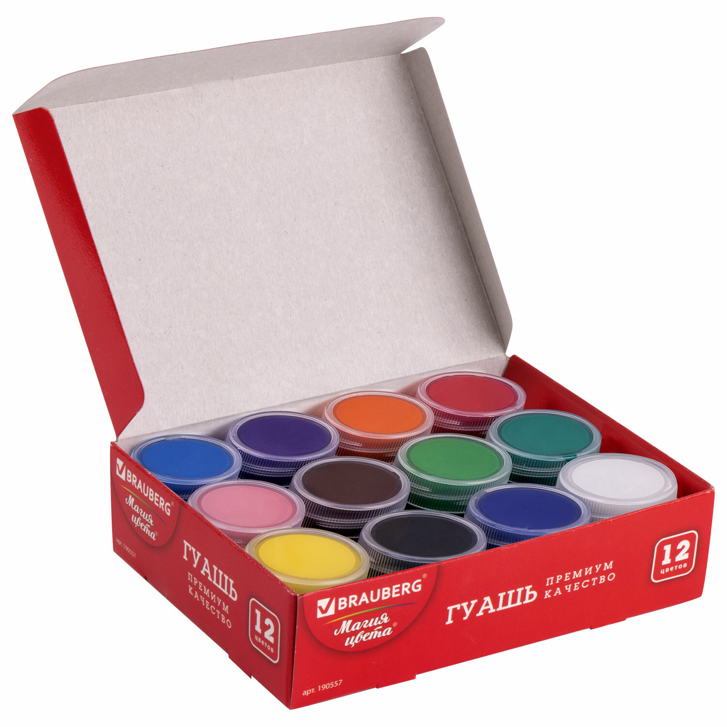 Гуашь BRAUBERG "МАГИЯ ЦВЕТА", 12 цветов по 20 мл, 190557