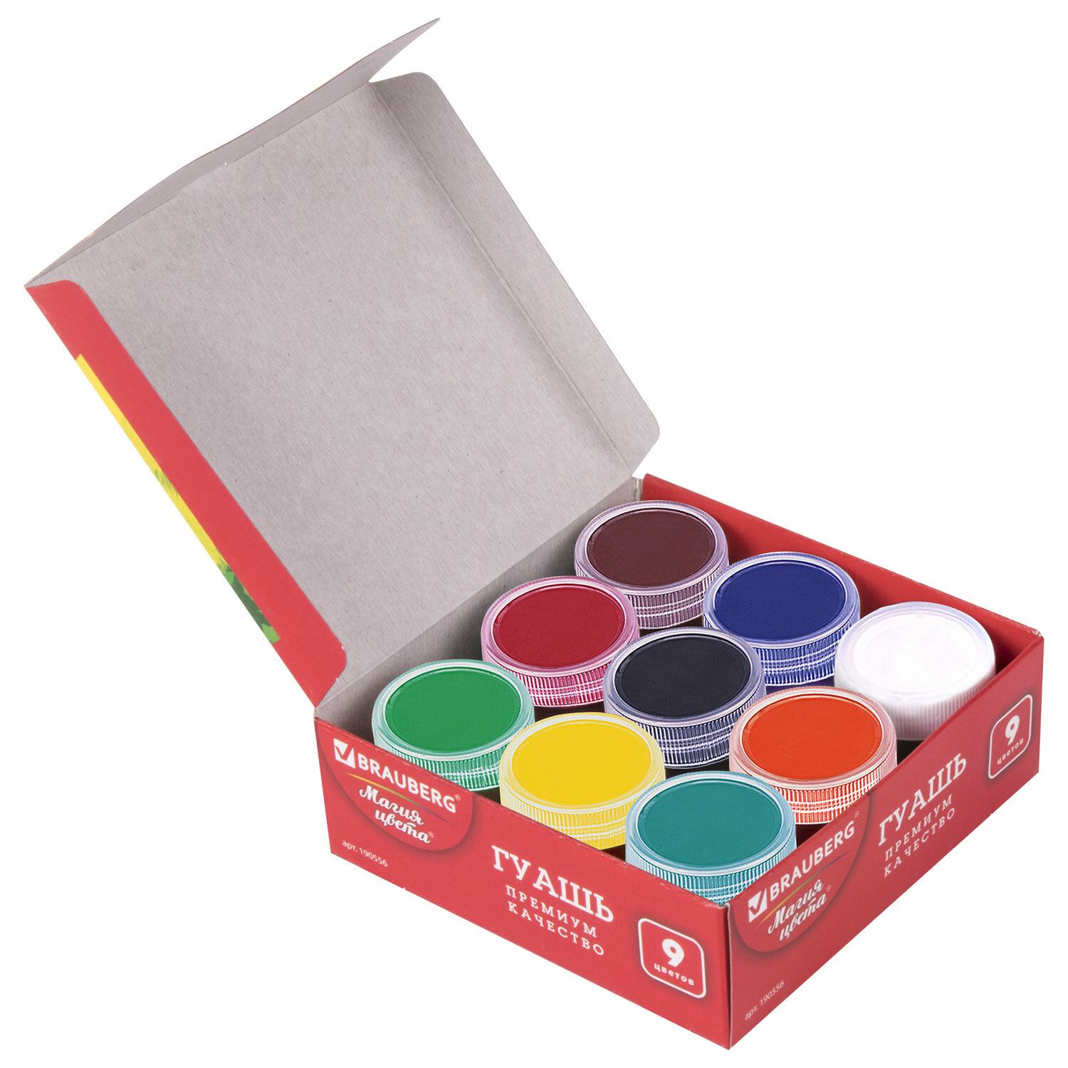 - Гуашь BRAUBERG "МАГИЯ ЦВЕТА", 9 цветов по 20 мл, 190556