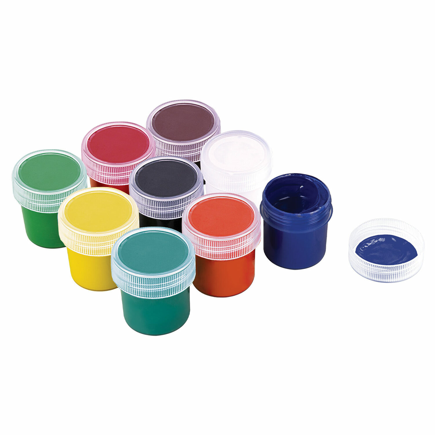 В наборе 9 ярких и насыщенных цветов: белый, черный, красный, синий, желтый, зеленый, коричневый, оранжевый, фиолетовый.