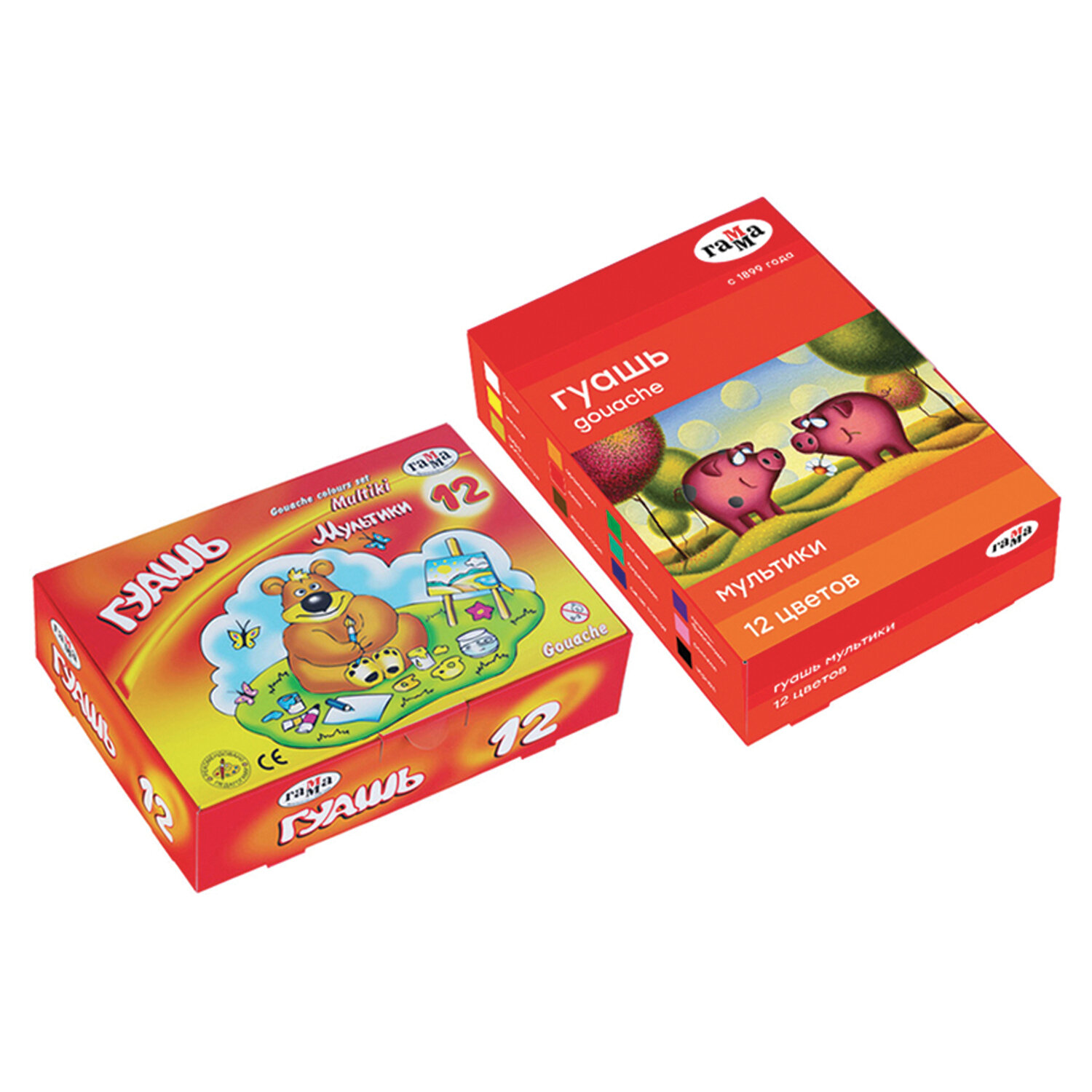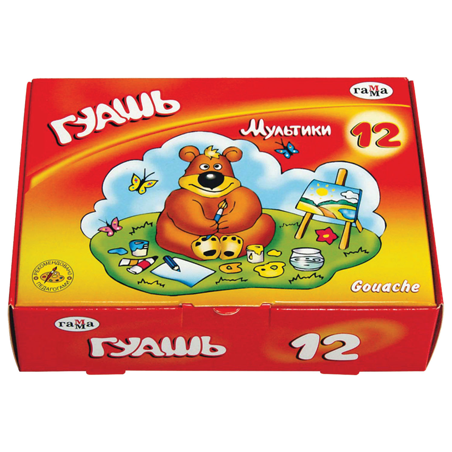 - Гуашь ГАММА "Мультики", 12 цветов по 20 мл, картонная упаковка, 221032
