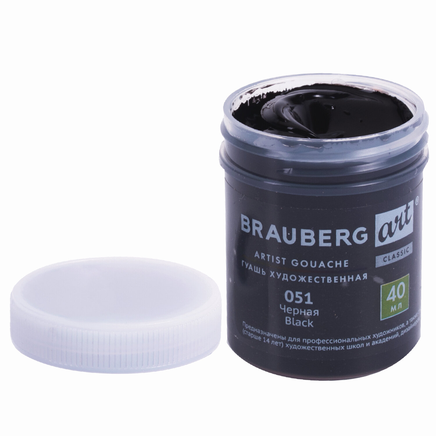 - Гуашь художественная 1 шт., BRAUBERG ART CLASSIC, баночка 40 мл, ЧЕРНАЯ, 191568